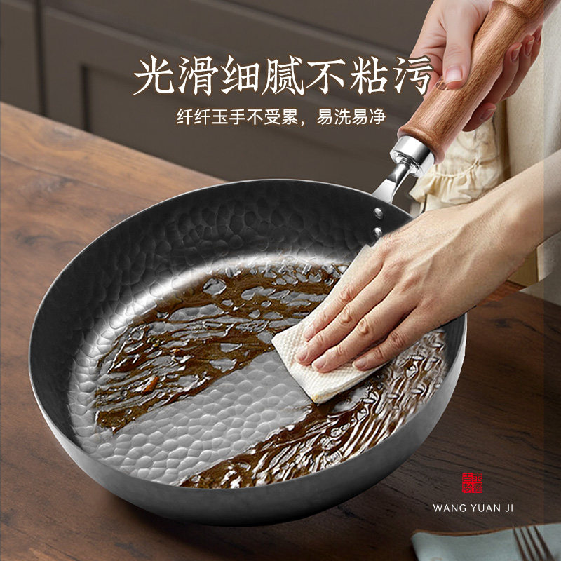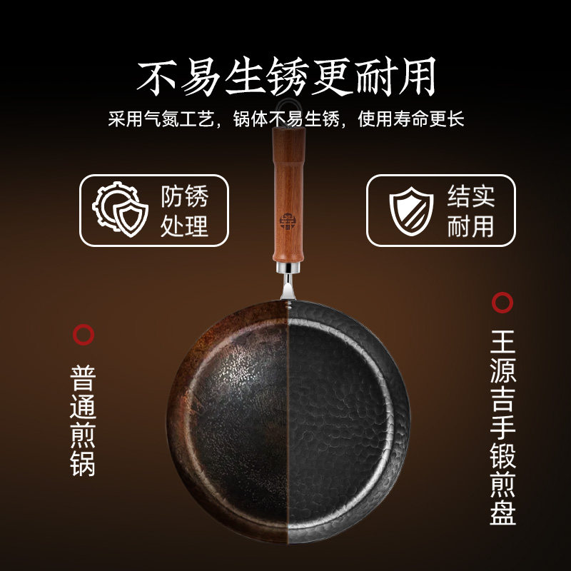 王源吉铁锅不粘锅无涂层煎锅燃气灶电磁炉通用平底锅煎盘早餐锅