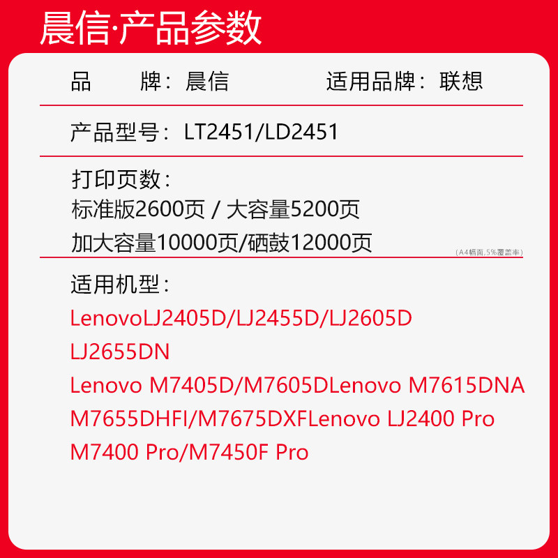 适用联想M7400Pro粉盒M7605D硒鼓M7615DNA LT2451H墨粉盒LJ2605D M7655DHF M7405D M7400W打印机墨盒M7455DNF