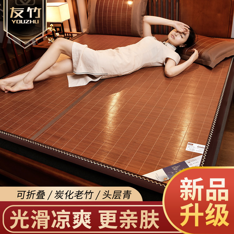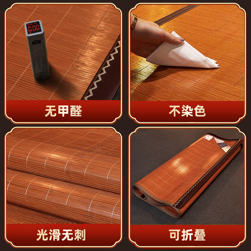 夏季凉席直筒1.8m床双面竹席1.5冰丝1.1不折叠1.3定制1.6竹子定做