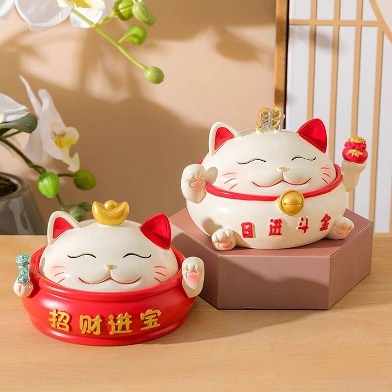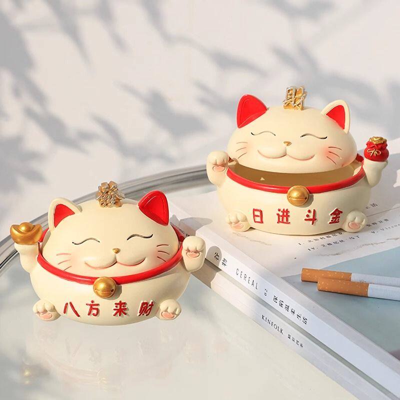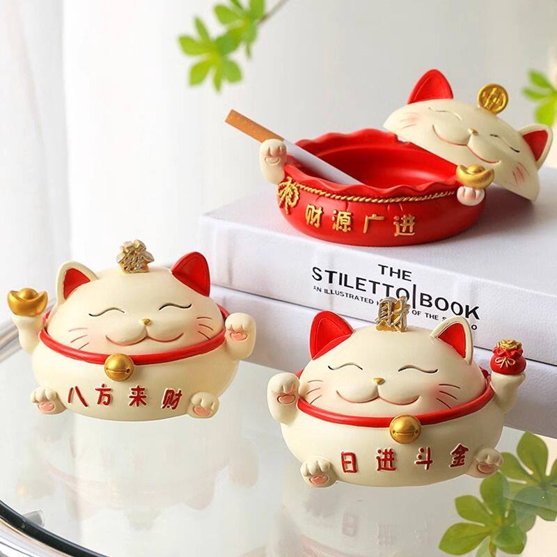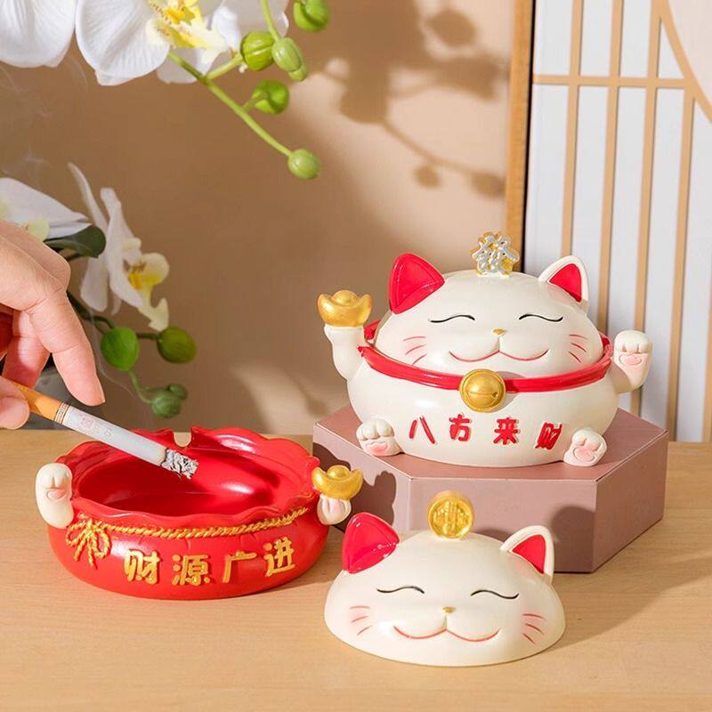 创意招财猫烟灰缸带盖家用客厅高端大气上档次会客室老板办公桌面