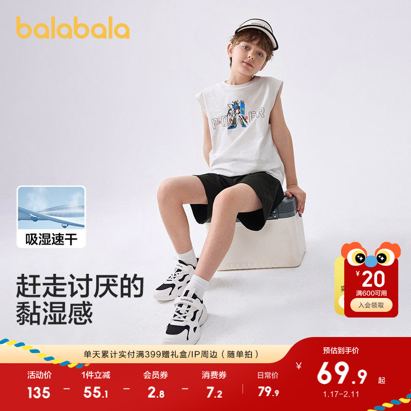 巴拉巴拉童装儿童套装男童背心2025新款夏装两件套速干透气无袖潮
