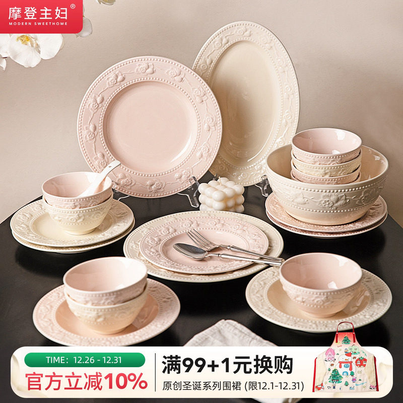 摩登主妇餐具2025新款法式碗具订婚结婚新婚礼物碟筷碗盘套装家用