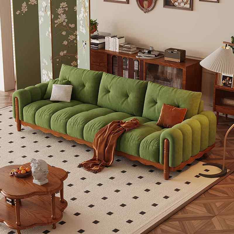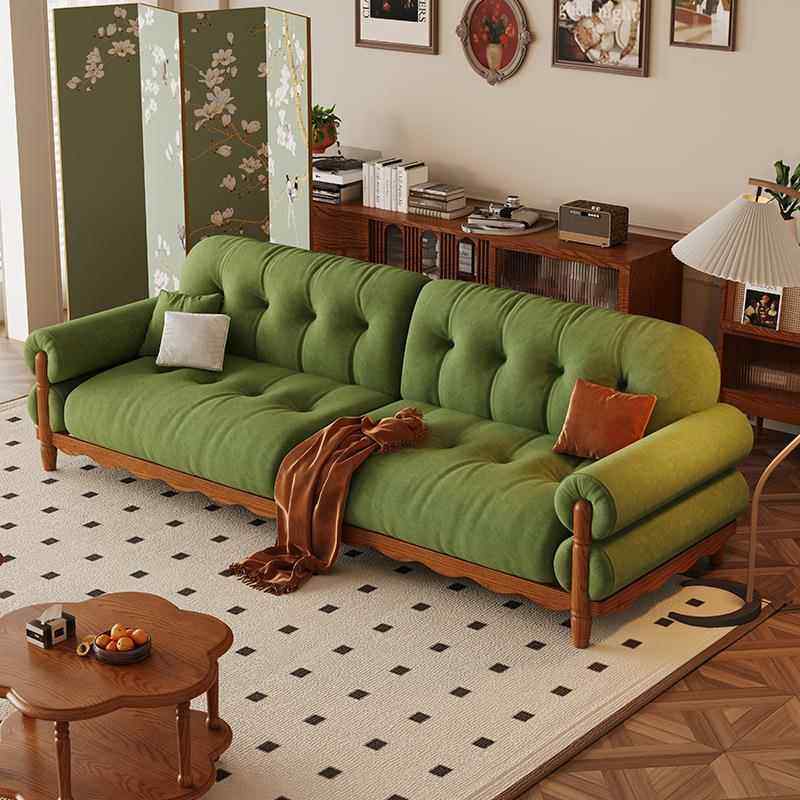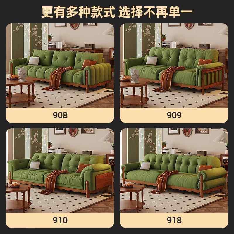 法式实木沙发直排中古风客厅2024新款小户型可拆洗白蜡木布艺沙发