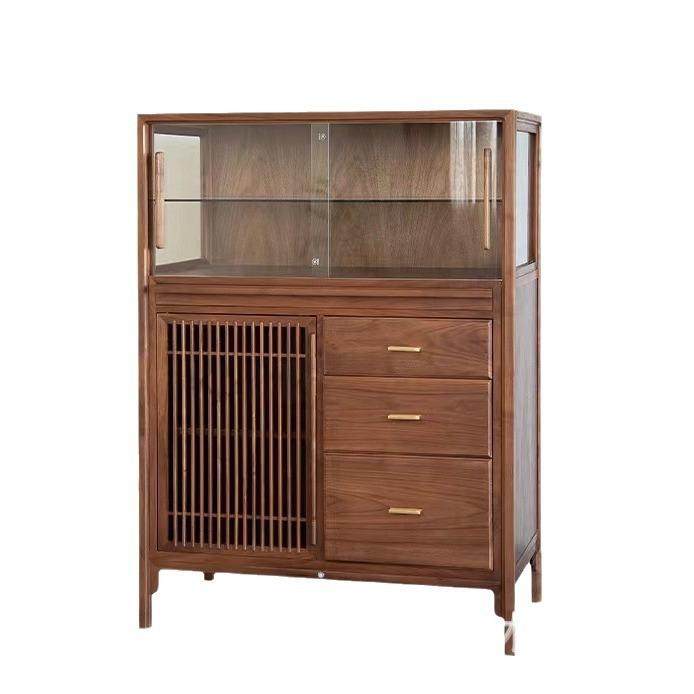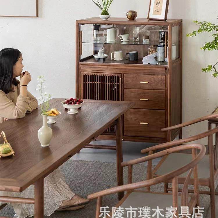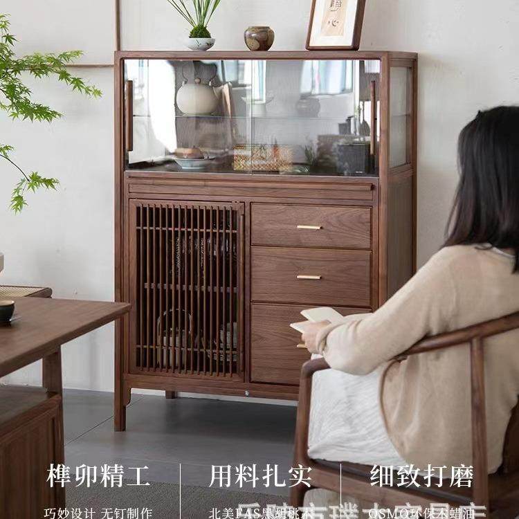 璞木新中式实木酒柜餐边柜客厅边柜沙发储物柜黑胡桃木茶边柜角柜