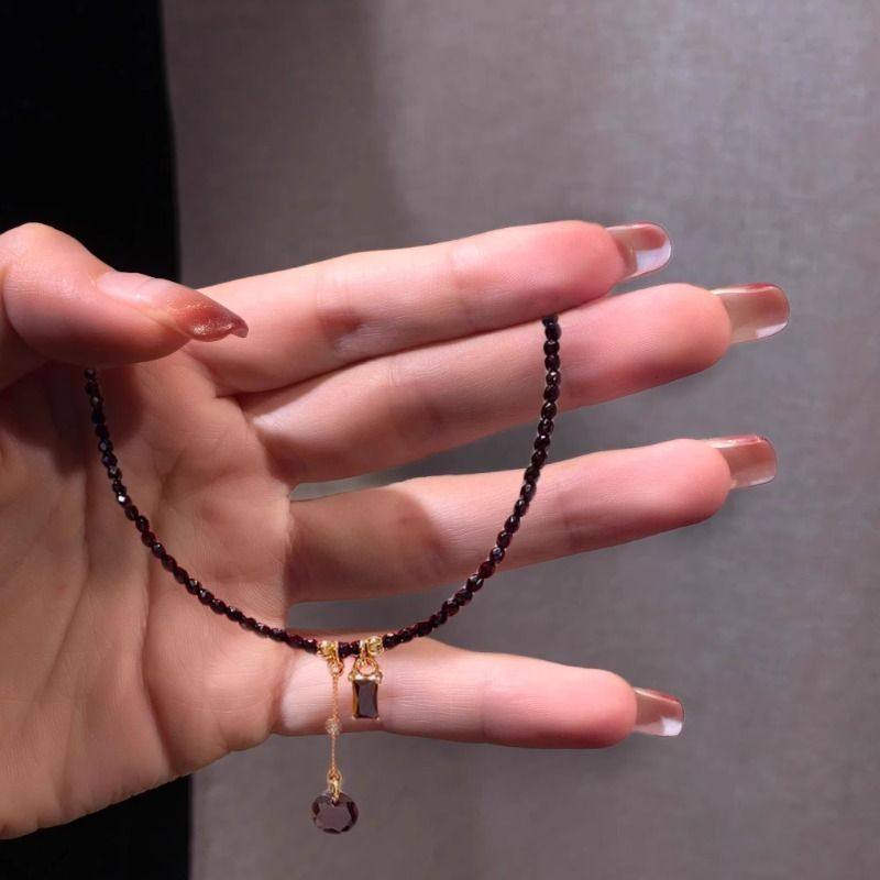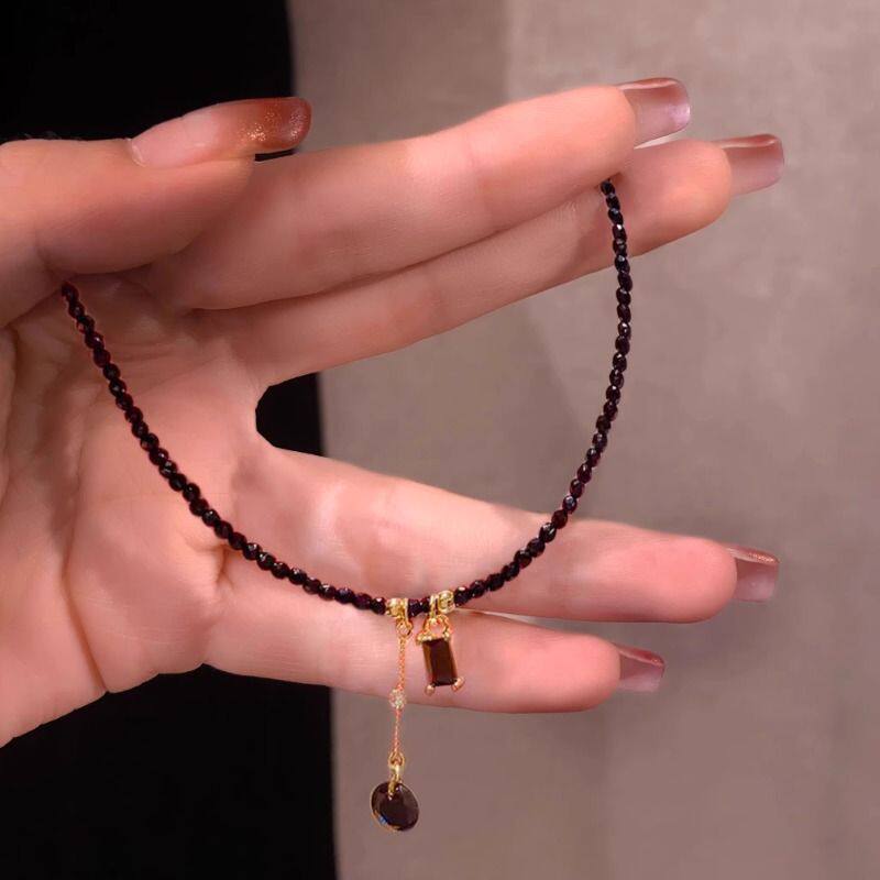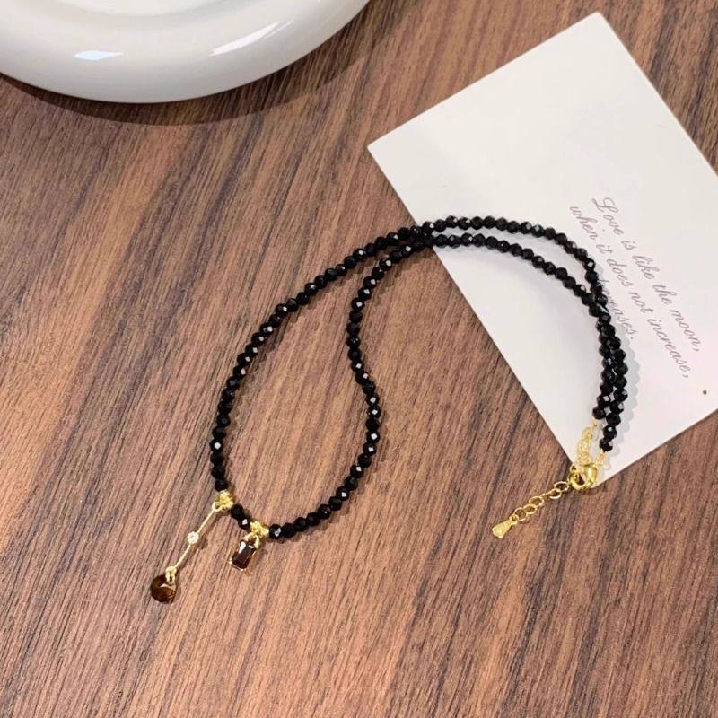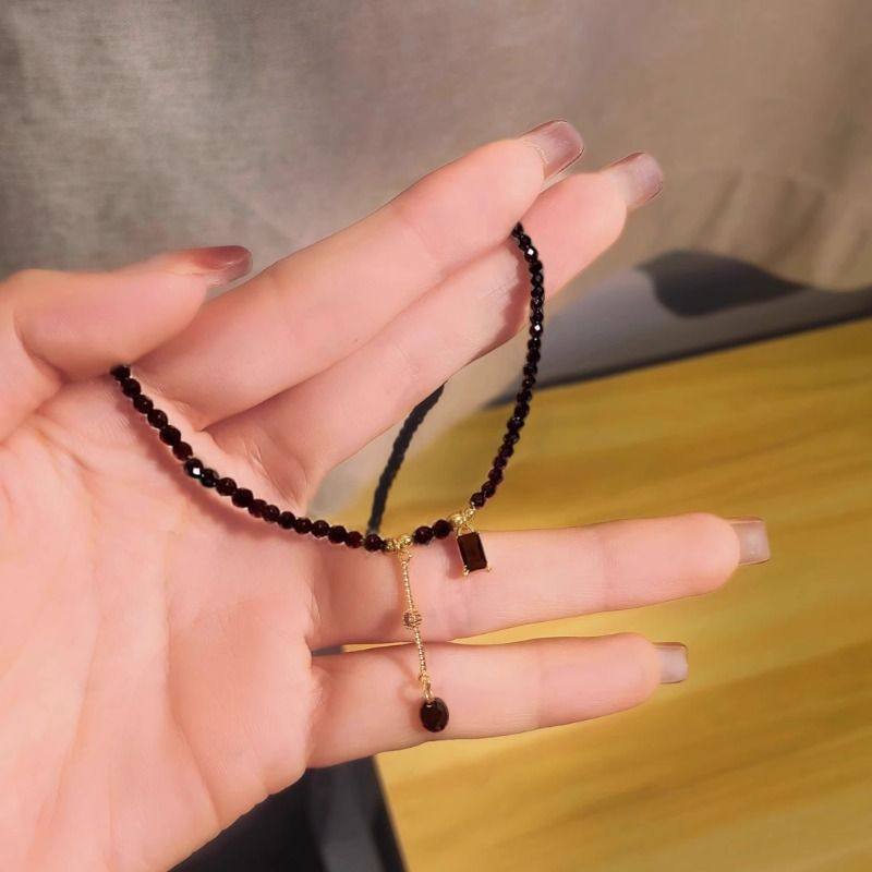 黑色水晶流苏项链女款高级感小众设计感短款颈链2025年新款锁骨链