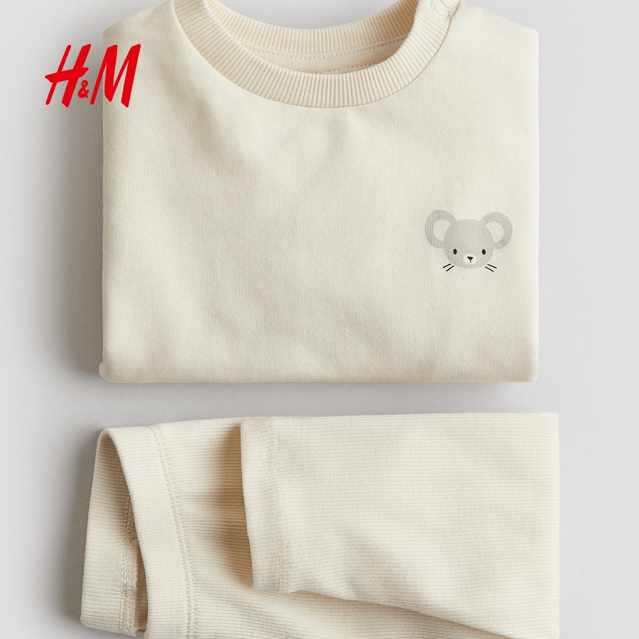 HM童装女婴套装2件式2025年冬季新品圆领拉绒卫衣和打底裤1170051