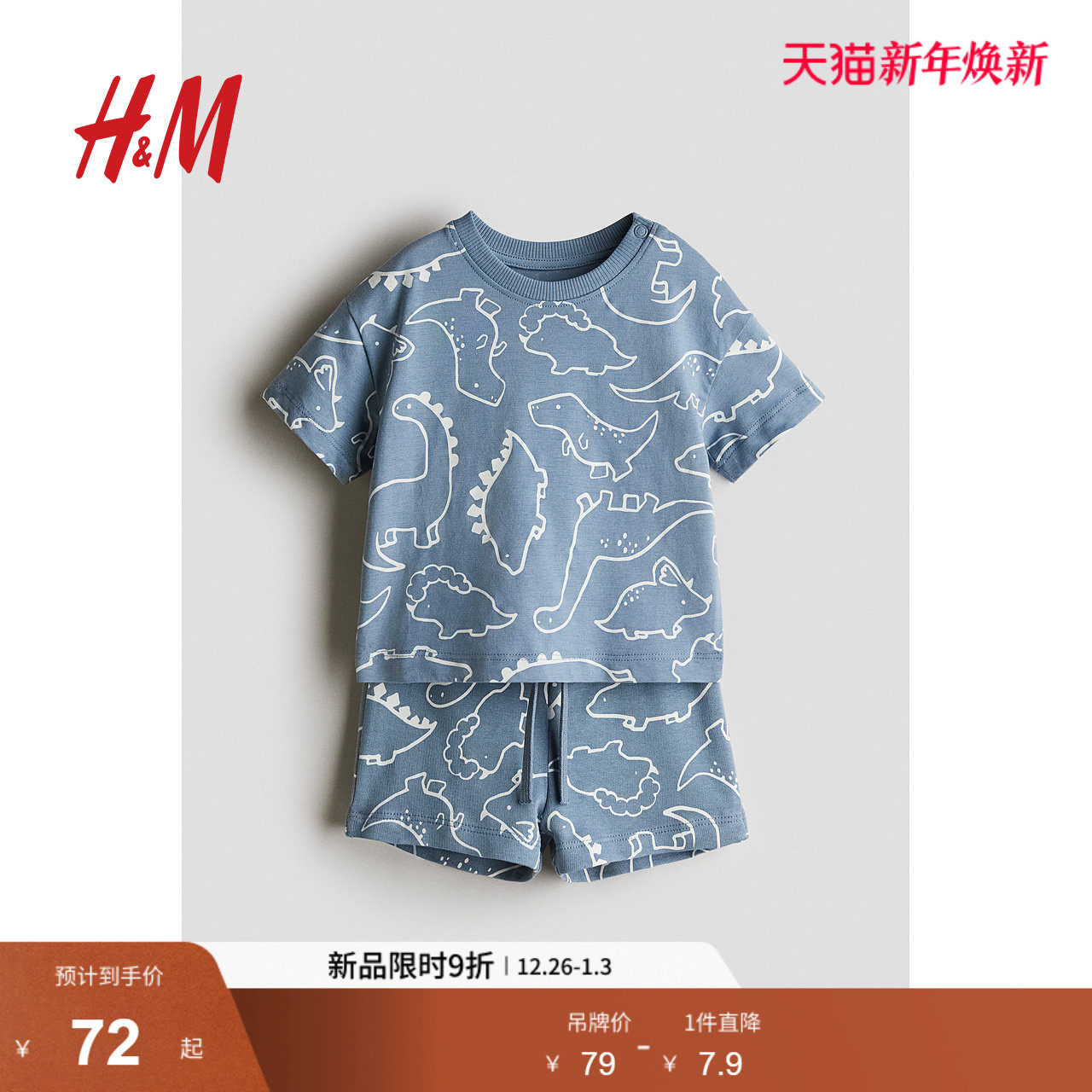HM童装男婴套装2件式2025冬季新款洋气印花圆领短袖短裤1265905