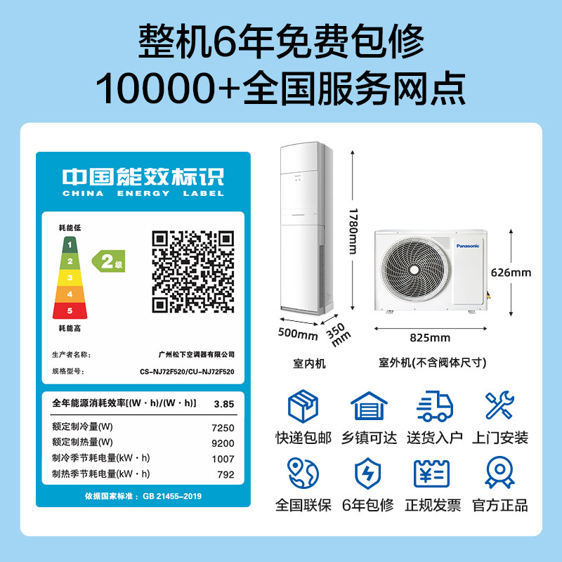 【小冰糕系列】松下25新品3匹变频空调新二级能效方柜NJ72F520