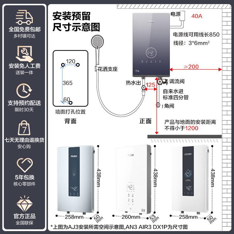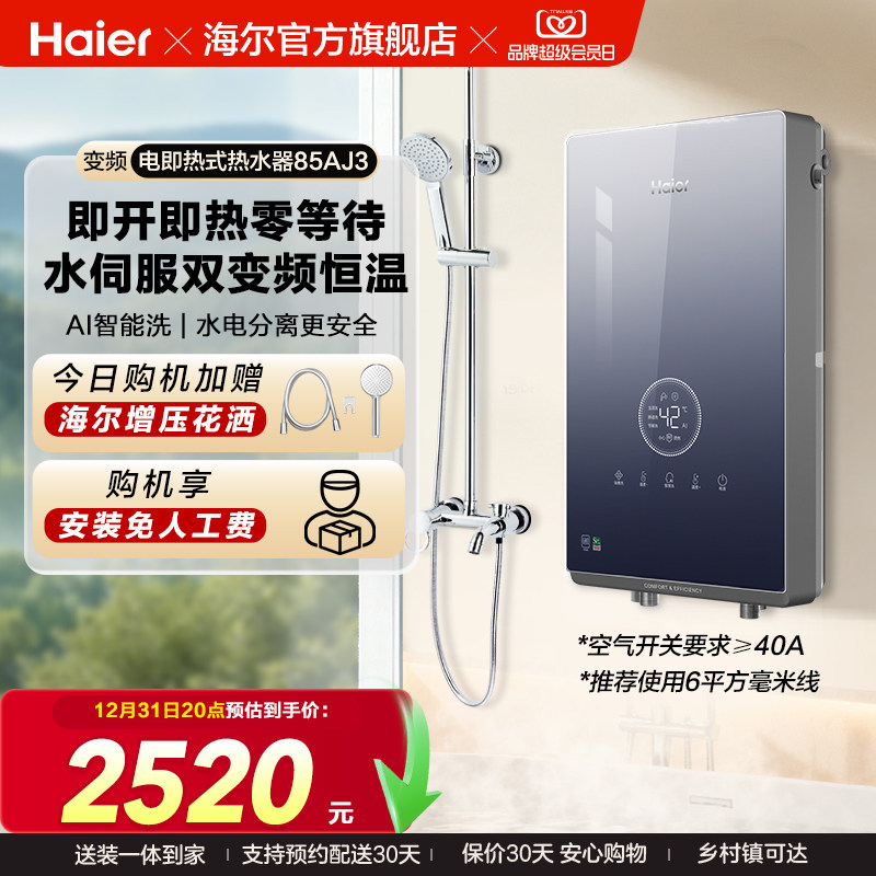 海尔即热式电热水器官方家用卫生间水伺服恒温变频洗澡神器85AJ3