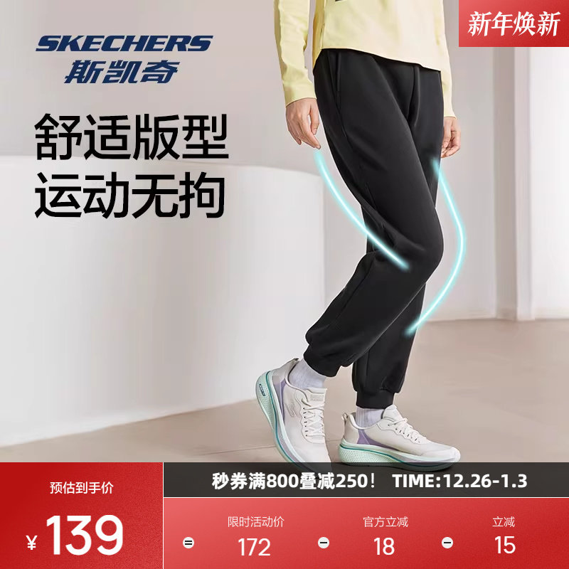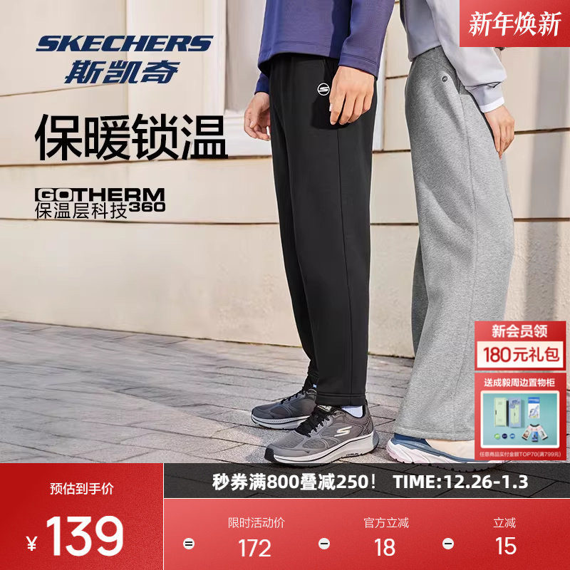 斯凯奇冬季加绒运动裤男女同款束脚裤子蓄热柔软舒适针织长裤简约