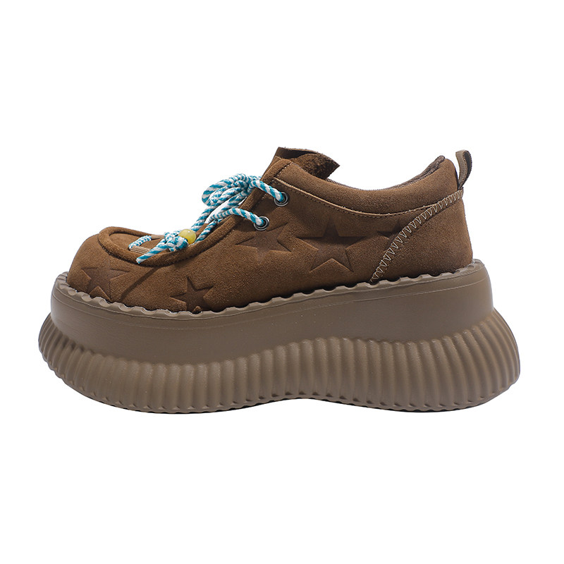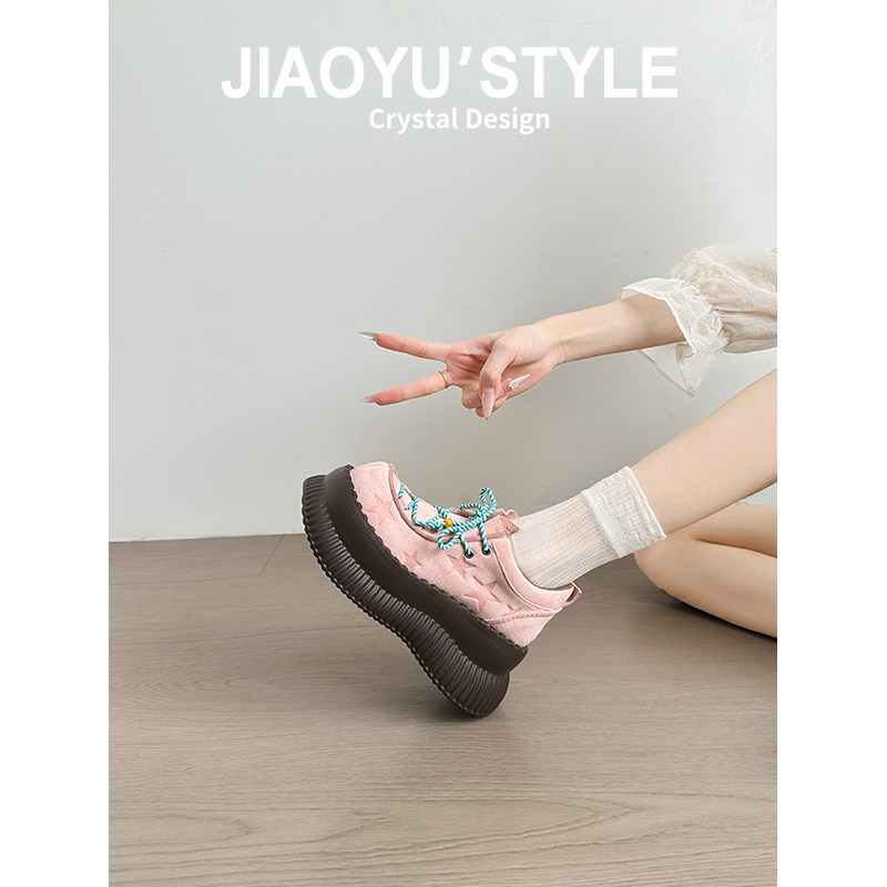 真皮~骄屿千禧甜妹增高丑萌厚底小皮鞋2025新款粉色大头百搭单鞋