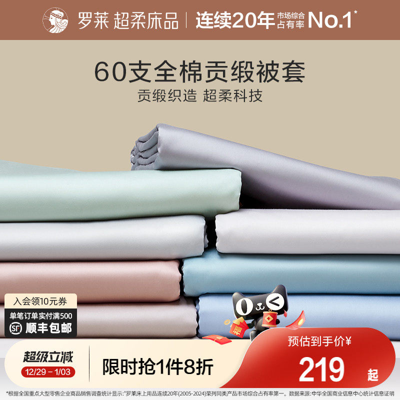罗莱家纺60支全棉贡缎单被套单件纯棉全棉学生宿舍单人床被罩单件