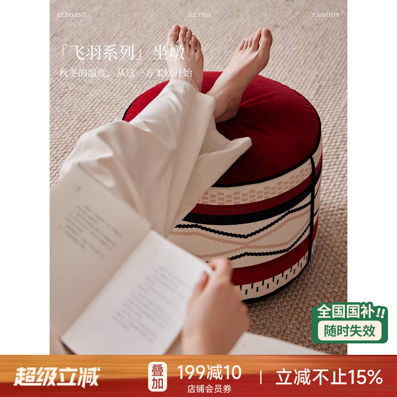 【国补再减15%】蜡笔派格序坐墩新年节日轻奢可拆洗撞色换鞋凳