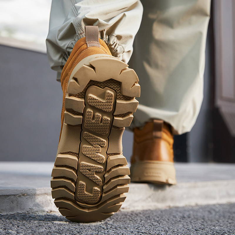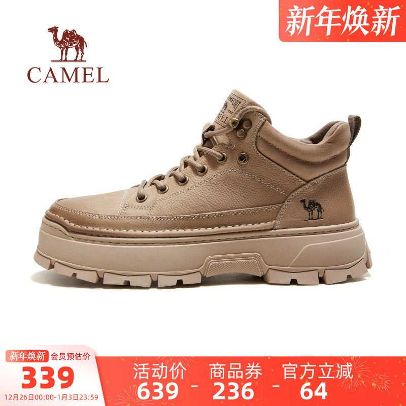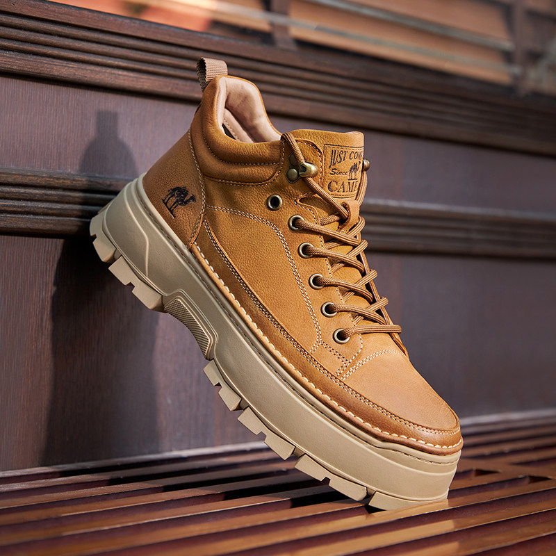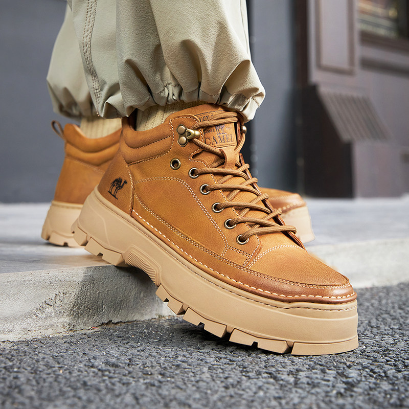 骆驼男鞋高帮鞋秋季新款防滑百搭厚底增高英伦真皮休闲滑板鞋男士