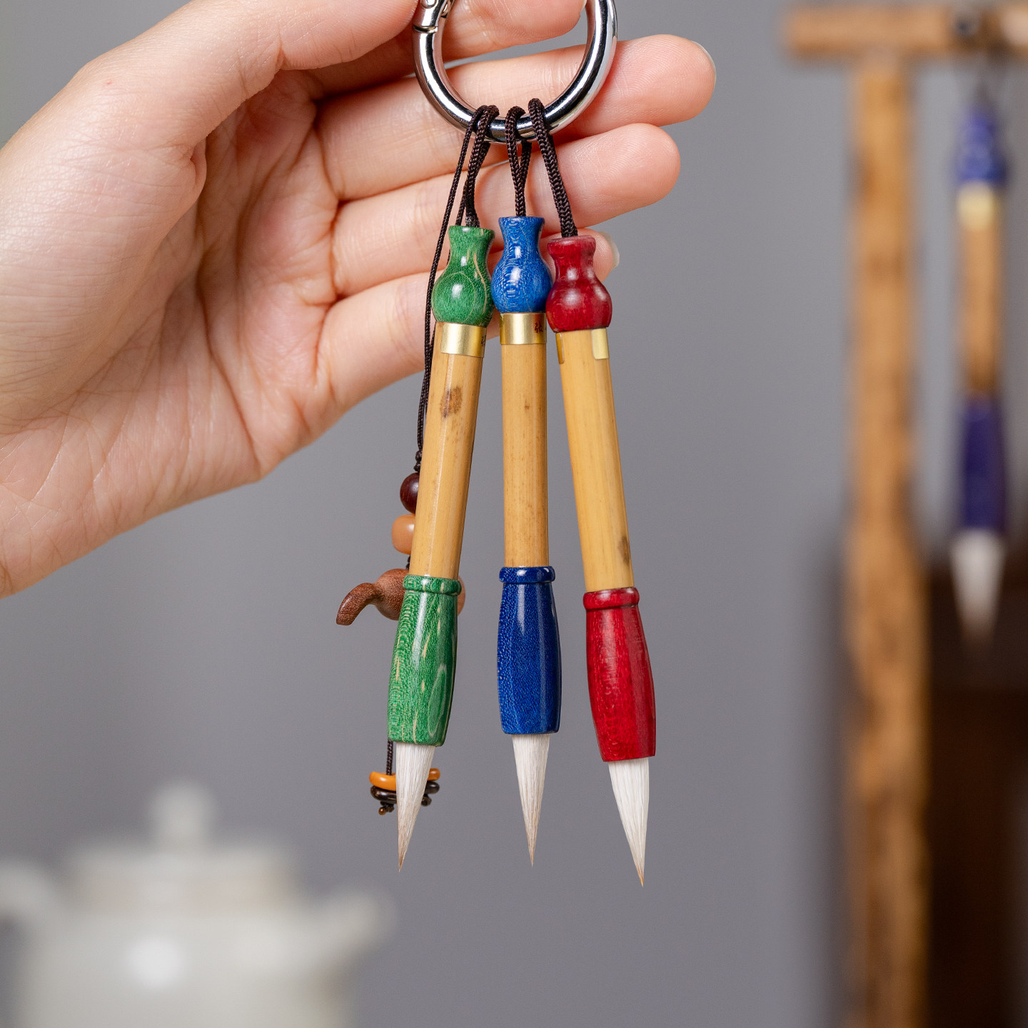张小凤彩虹马卡龙迷你毛笔钥匙扣手工挂件摆件文玩可爱中国风文昌笔套装小楷书法专用女生书法礼物用品兼毫