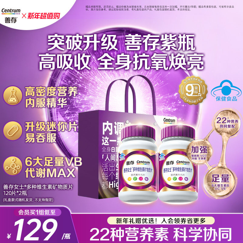 【新品】善存紫瓶男女复合维生素b族烟酰胺维c官方正品成人蓝帽