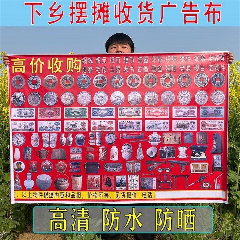 包邮下乡赶集摆地摊布收货古A钱币古董纸币下乡收古玩广告布