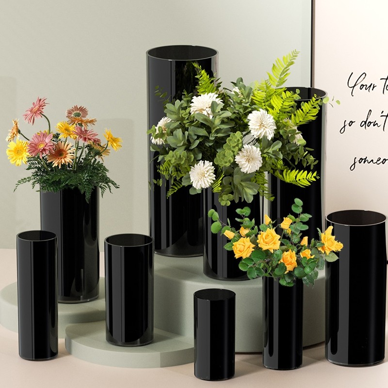 黑色花瓶轻奢小众高级感客厅插花亚克力中古水培创意摆件卧室玄关