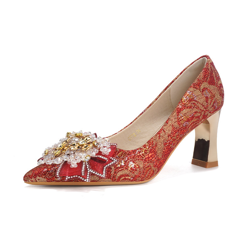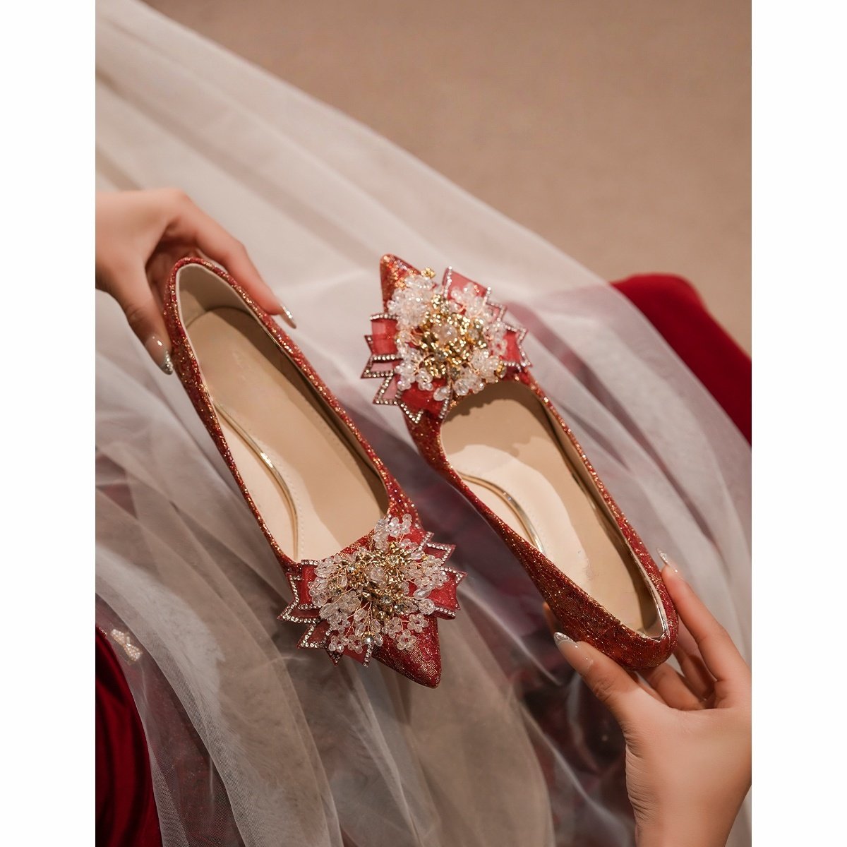 绝美水晶蝴蝶结婚鞋女主婚纱秀禾两穿新娘鞋敬酒服可穿粗跟高跟鞋