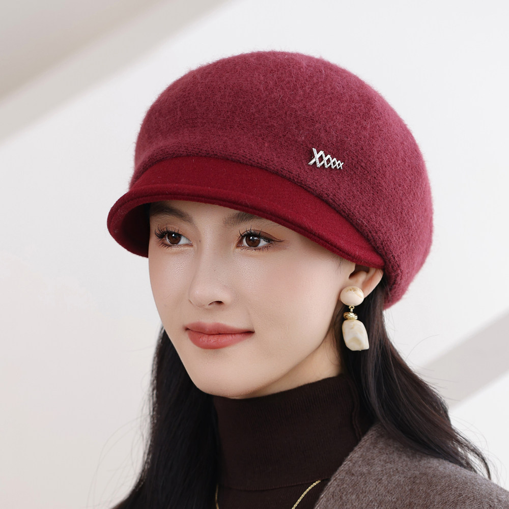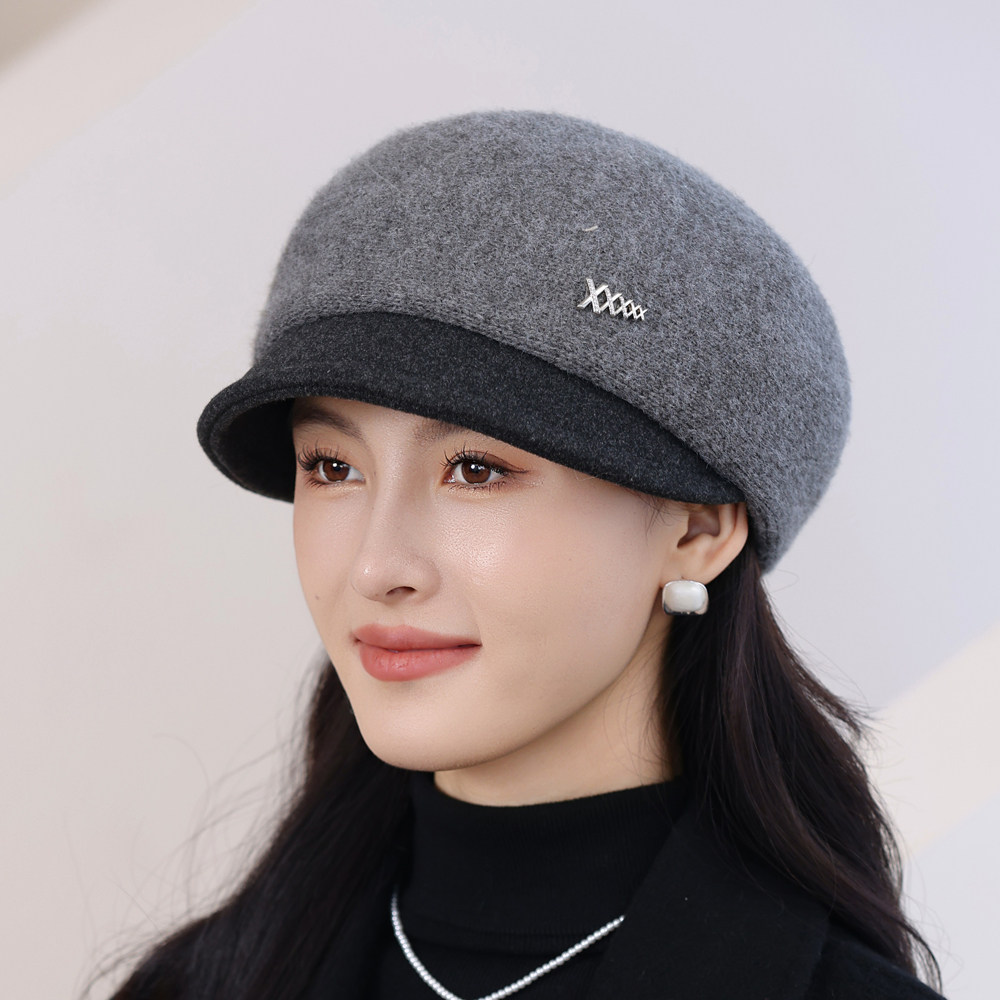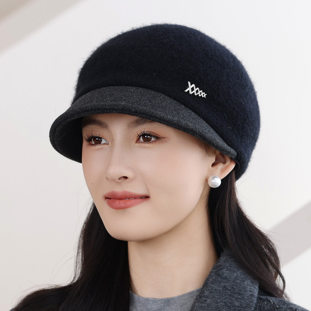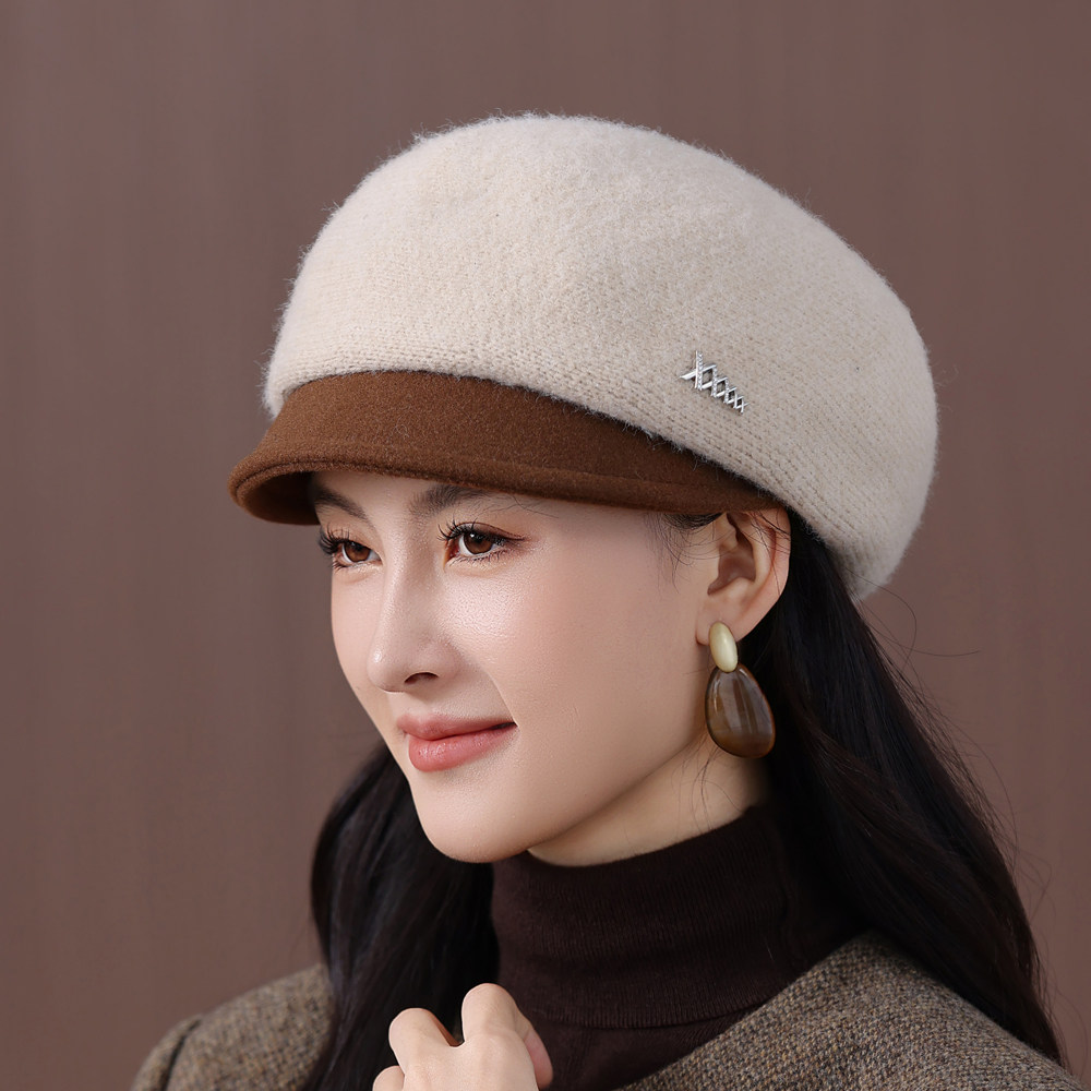 帽子女秋冬季针织保暖鸭舌帽加厚加棉贝雷帽女士妈妈帽韩版百搭款