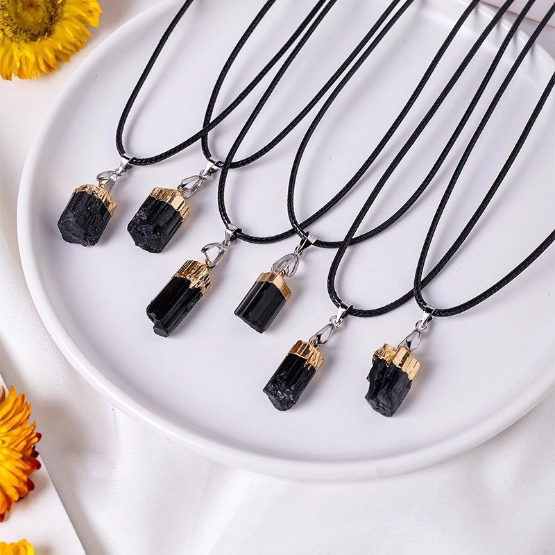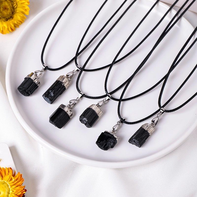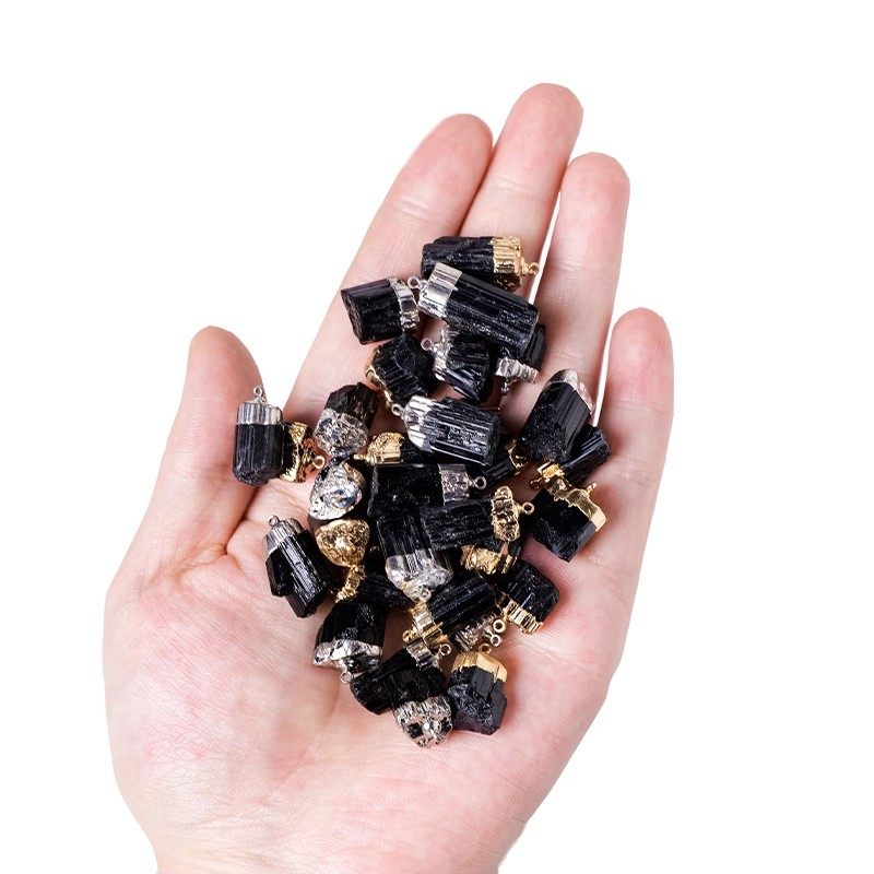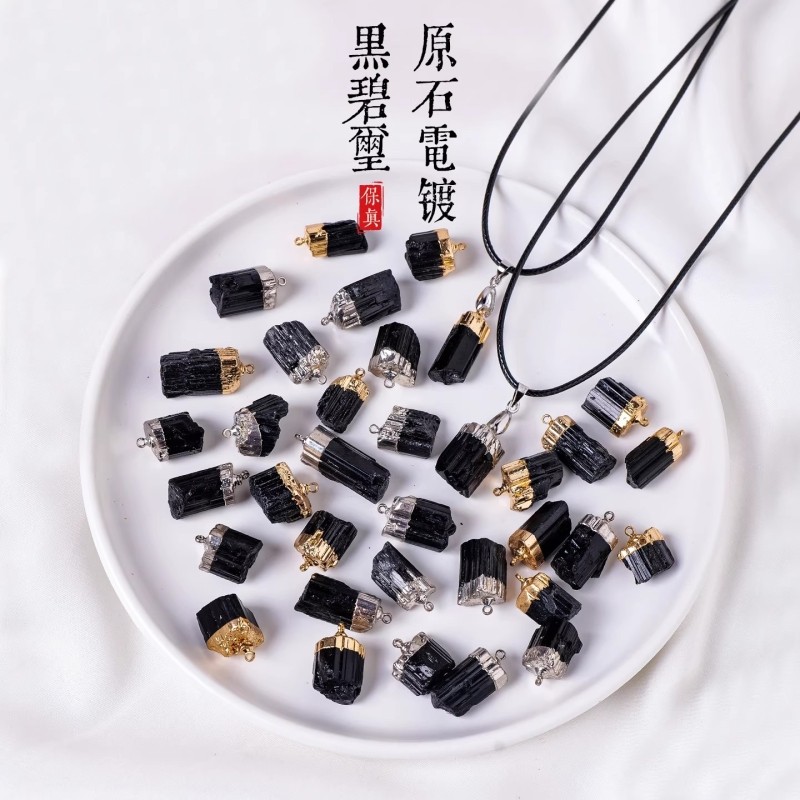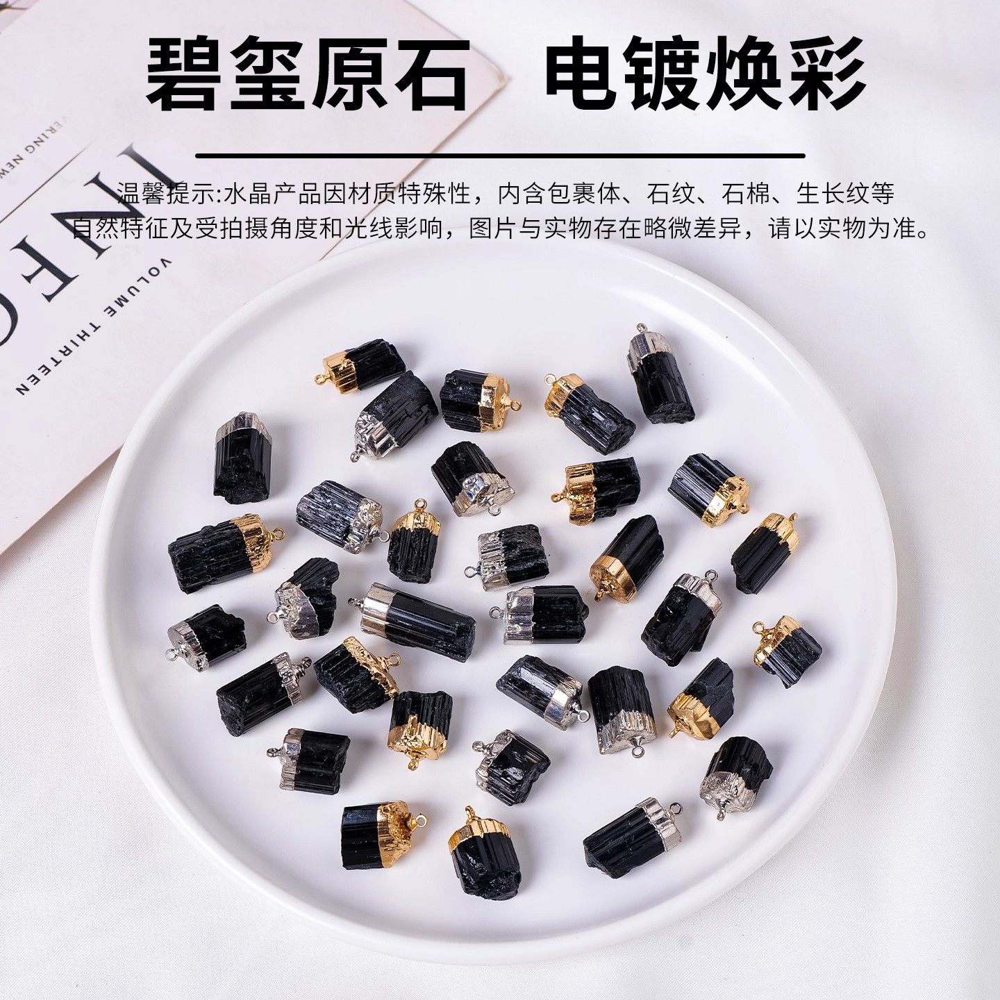 天然水晶矿石黑碧玺吊坠电气石石柱吊坠原矿石项链饰品挂件