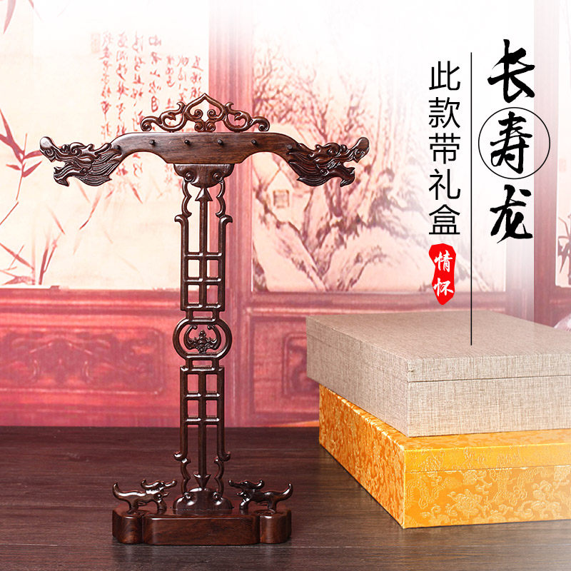 紫芳斋笔架鸡翅木红木实木龙头笔挂摆件简约创意可拆卸双层镂空雕刻10/12/13/14/支文房四宝书法用品架毛笔挂
