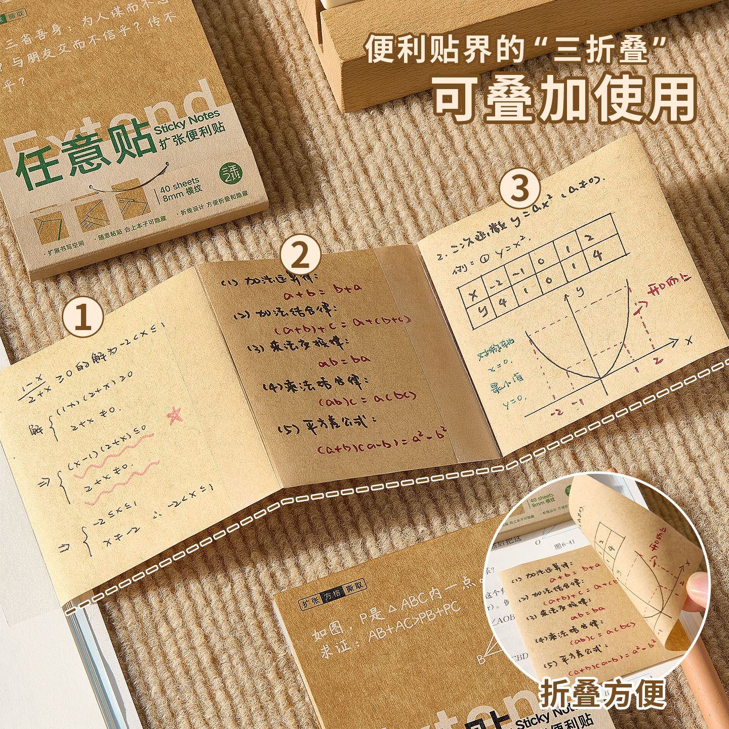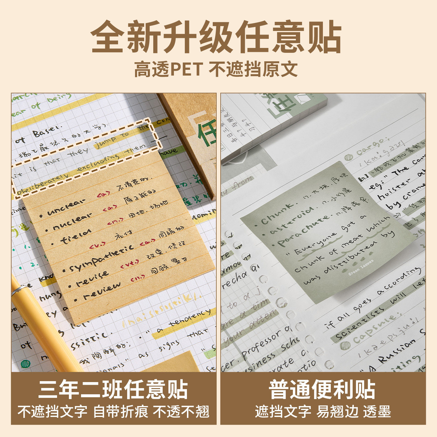 三年二班牛皮纸任意贴任意可撕便签学生专用可折叠不遮字便利贴