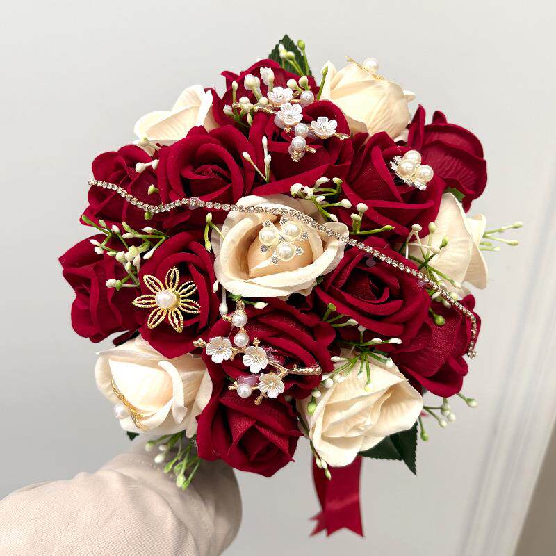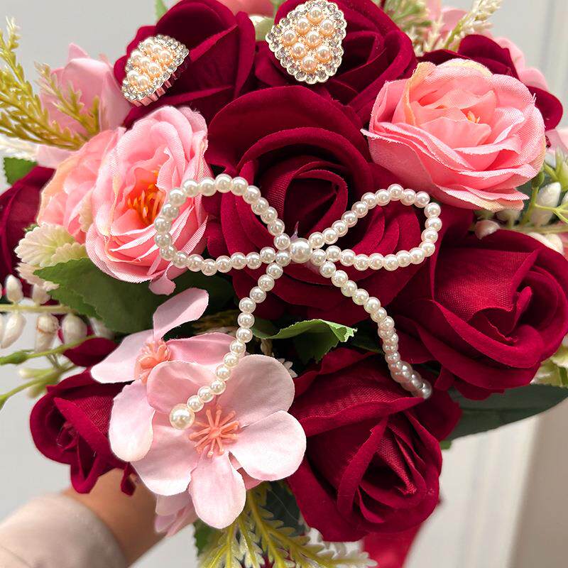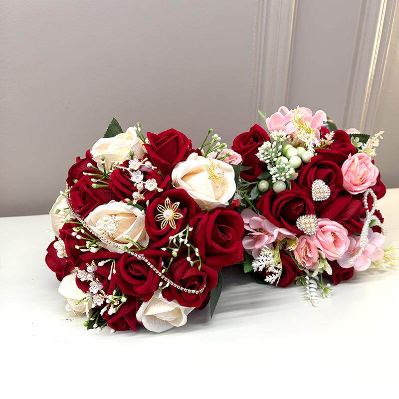 新娘仿真玫瑰婚庆手捧花束人造韩式拍摄婚礼结婚道具婚庆专用