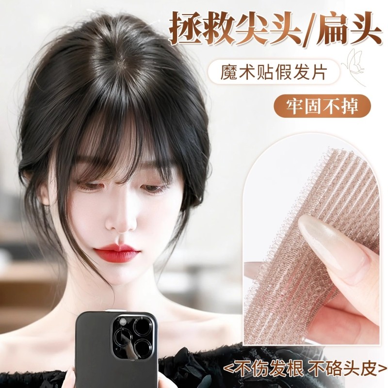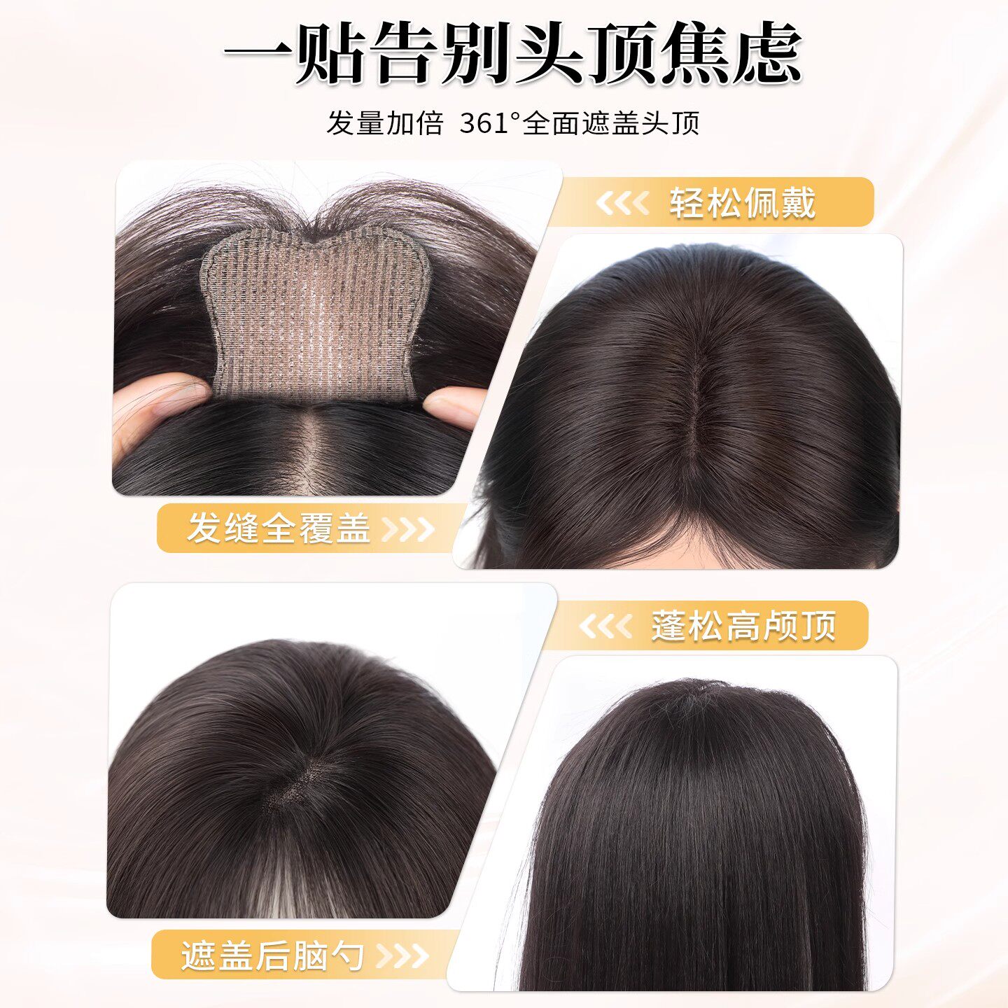 魔术贴假发片真发遮头顶白发女增发量蓬松自然前额无痕高颅顶假发
