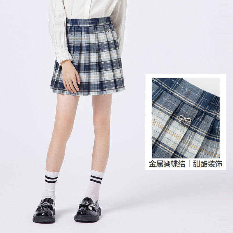 巴拉巴拉儿童JK裙子春秋女童格纹裙裤百褶裙中大童百搭半身裙潮流