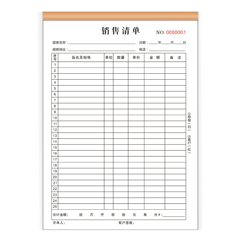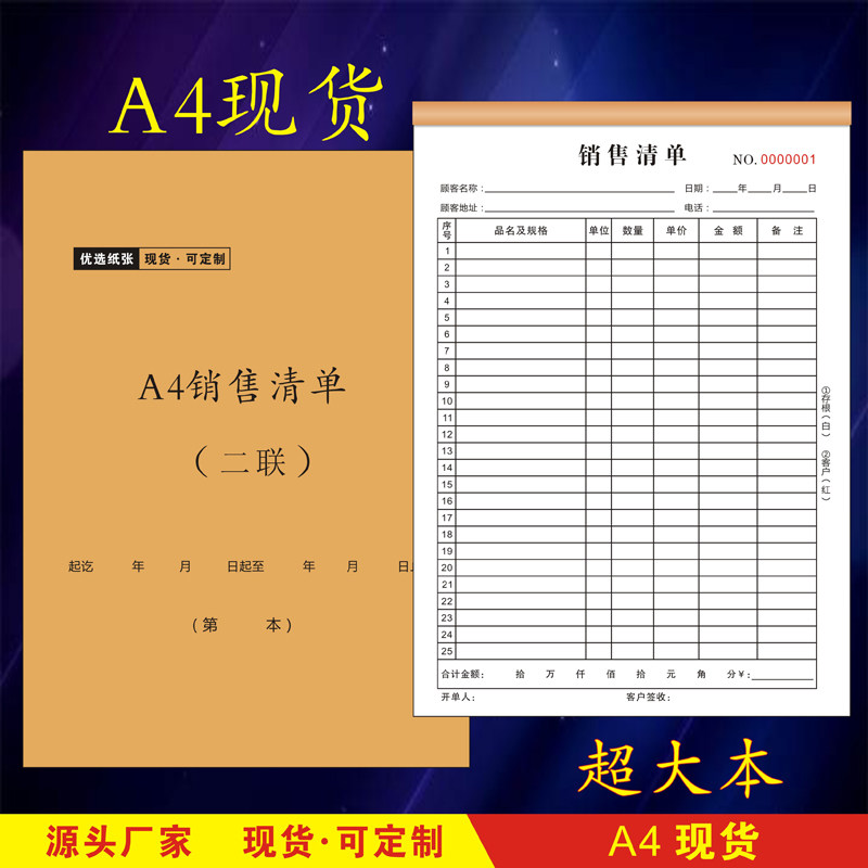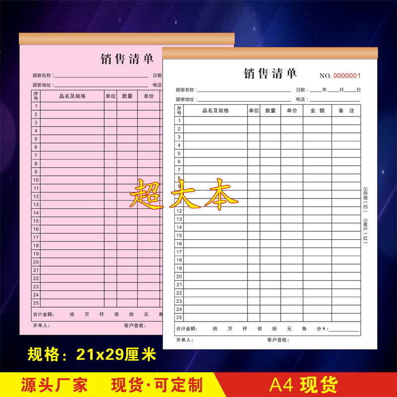 大本A4销售清单两联三联大号多行销货单蔬果生鲜清单送货手写单