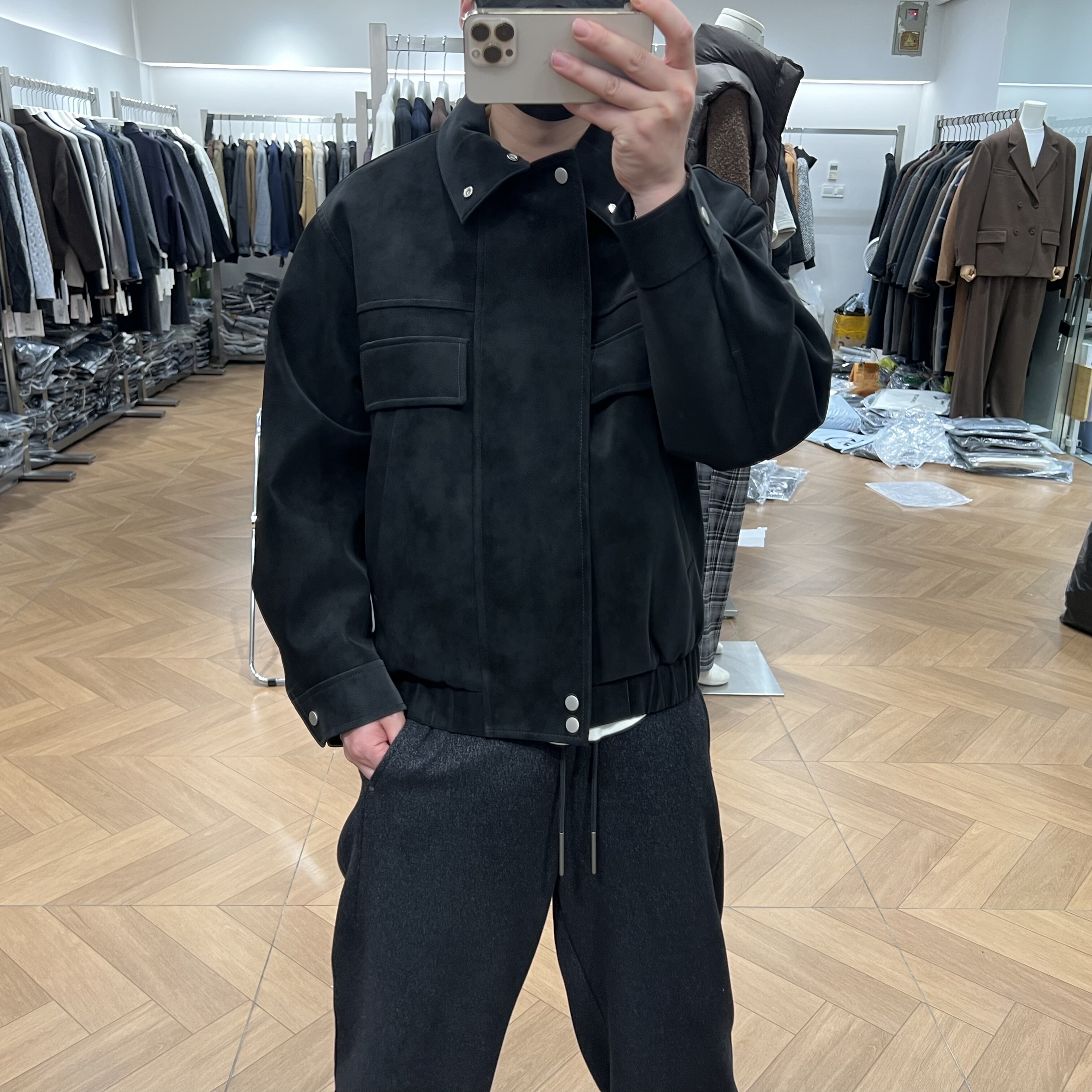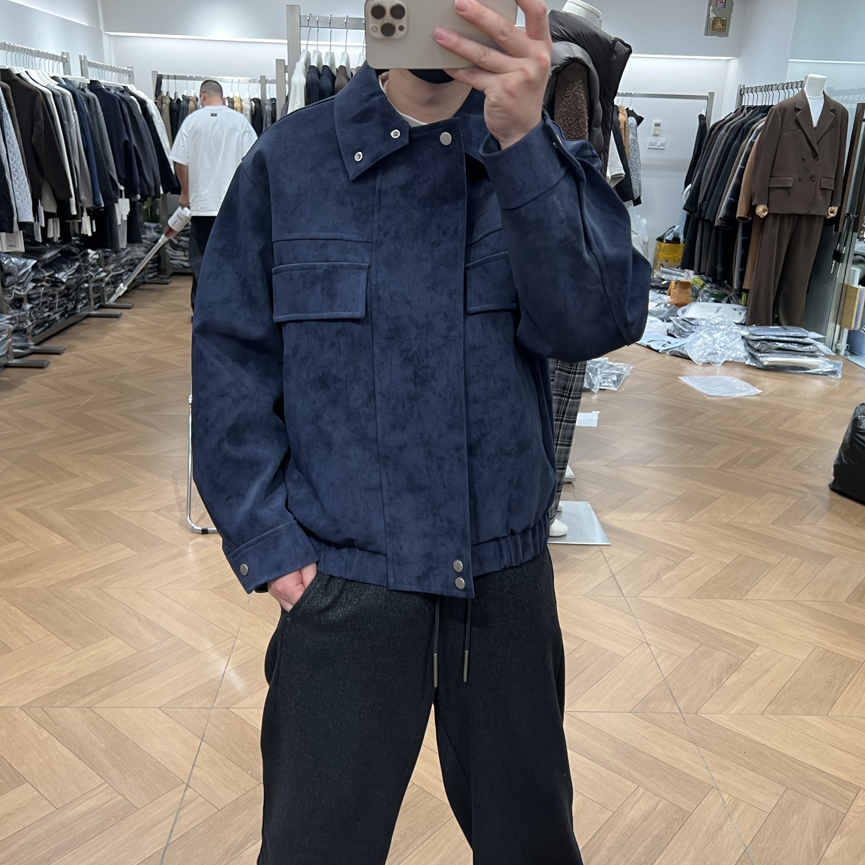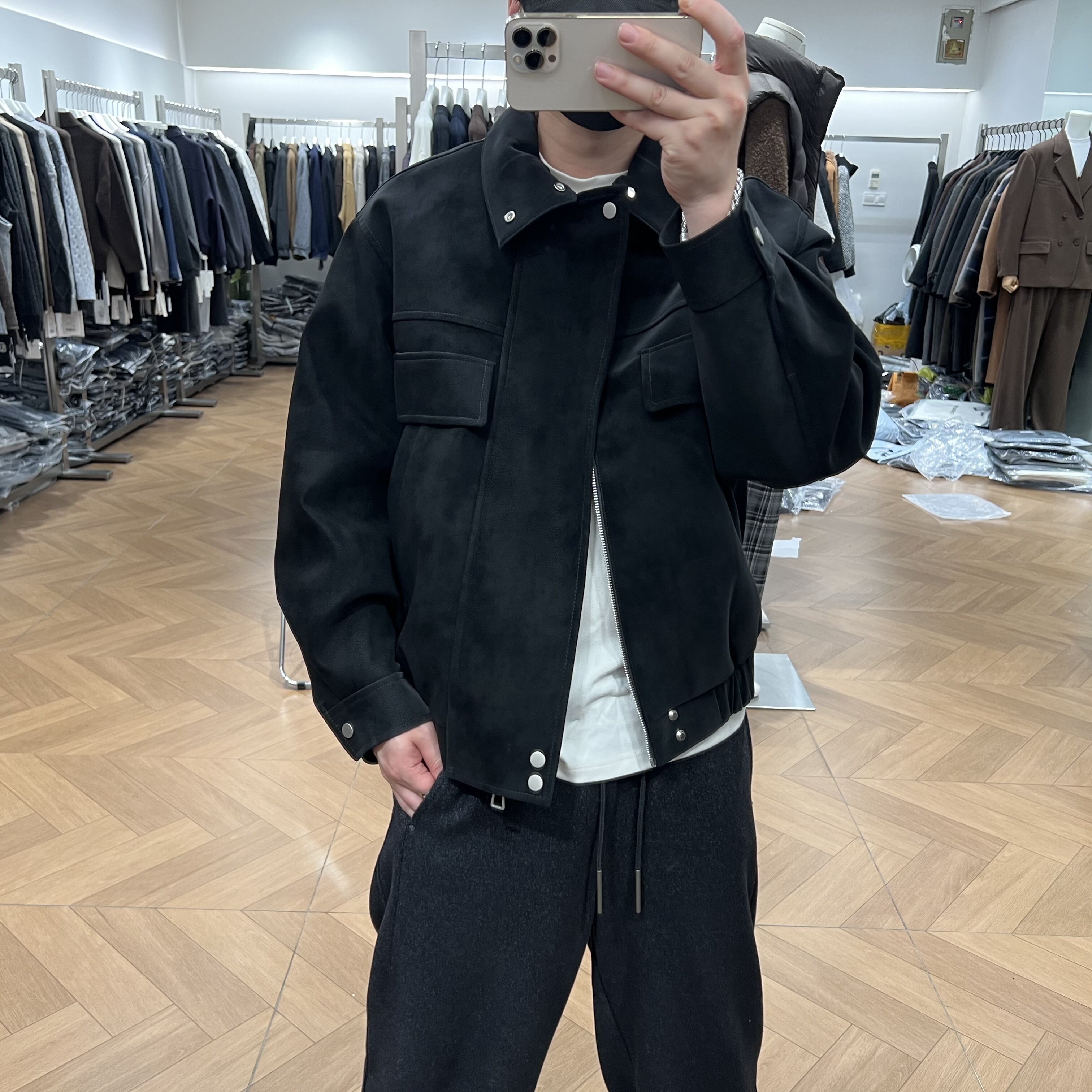 轻奢工装翻领麂皮绒羽绒服男冬季美式复古宽松美拉德鹅绒皮衣外套