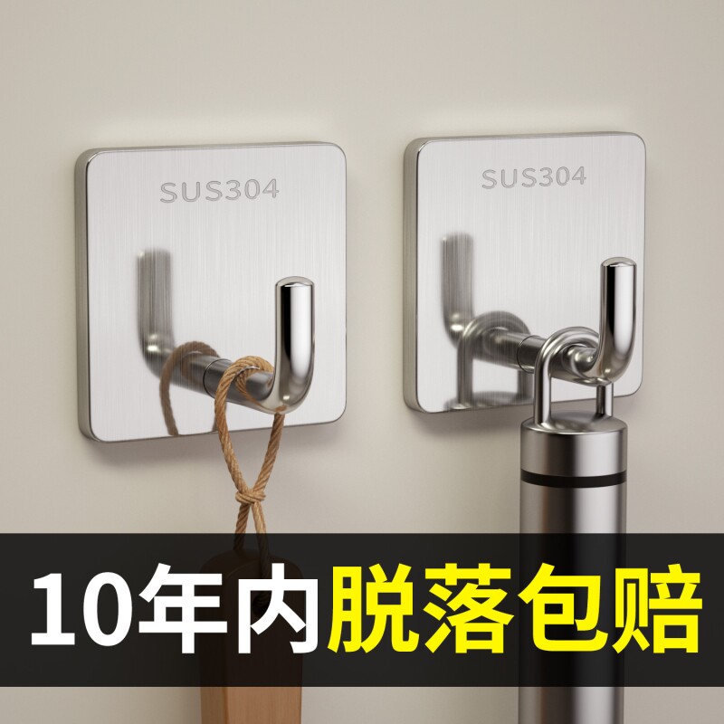 不锈钢免打孔挂钩强力承重粘胶钩子厨房浴室粘贴壁挂粘钩免钉超强