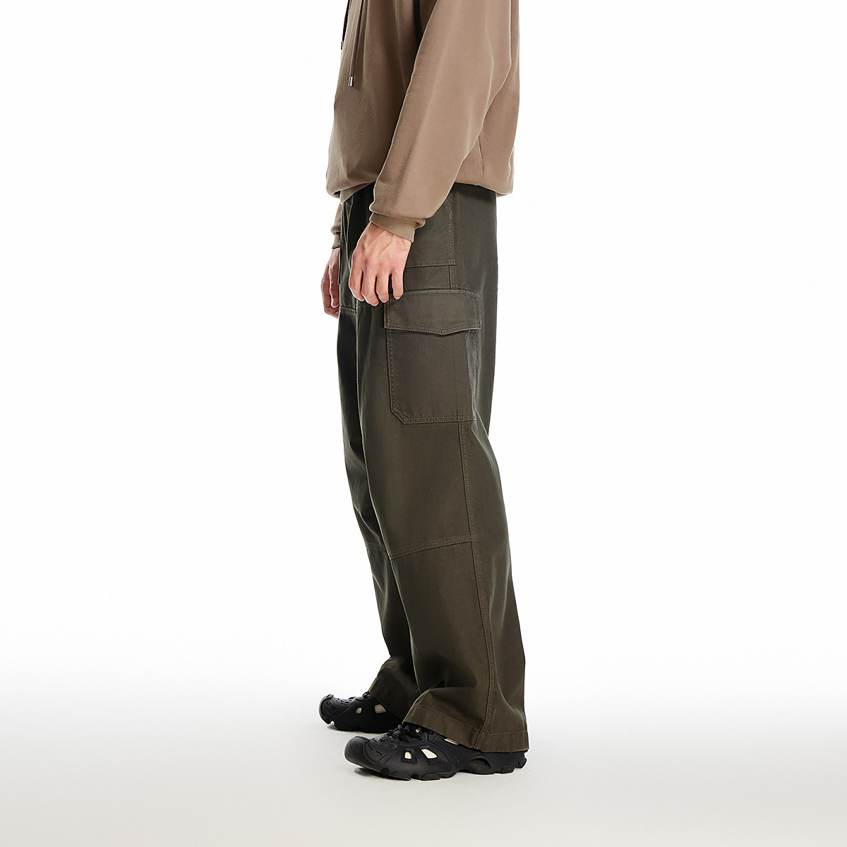 宽松版型;内置抽绳腰头;多口袋设计