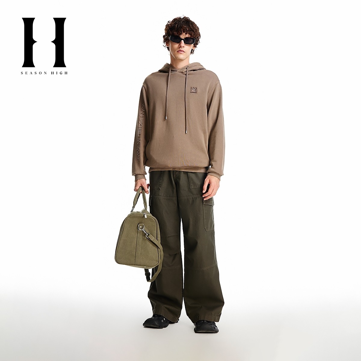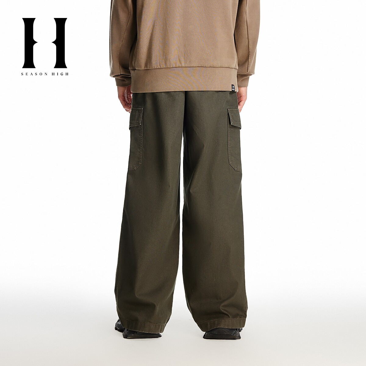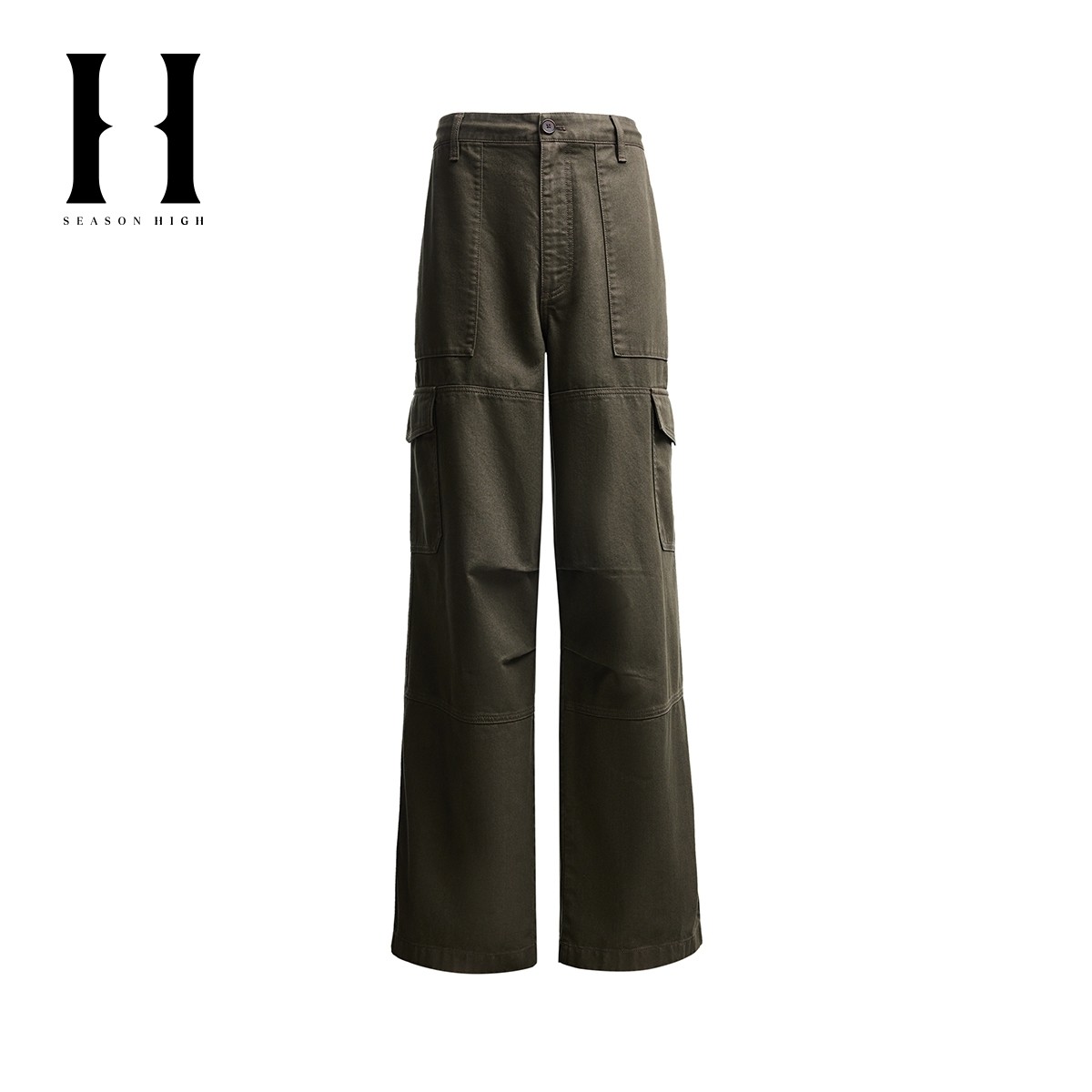 SEASONHIGH男士春季款宽松牛仔裤抽绳腰头多口袋工装设计长裤男裤