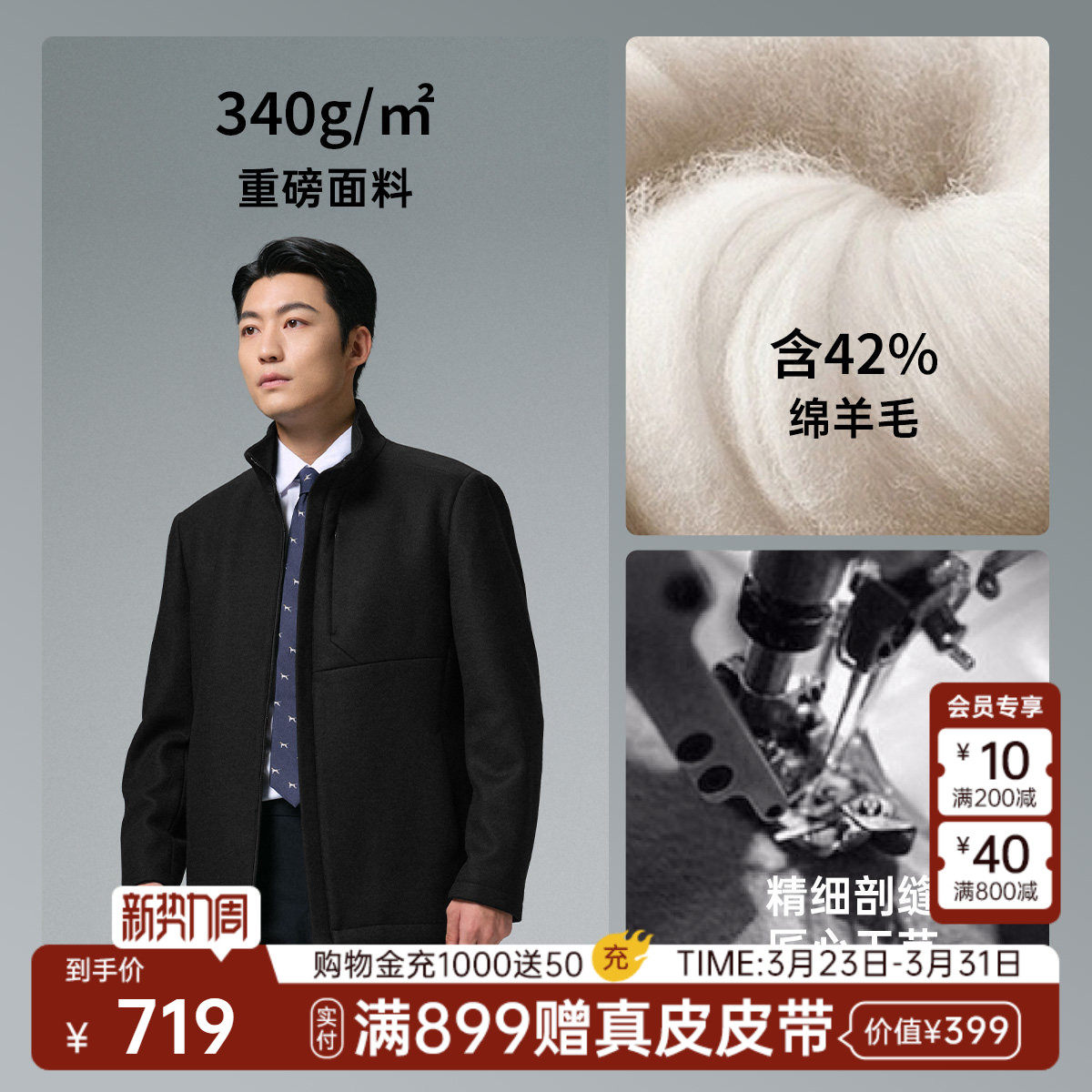 【立领】利郎官方毛呢大衣男士冬季商务男装夹克黑色羊毛外套