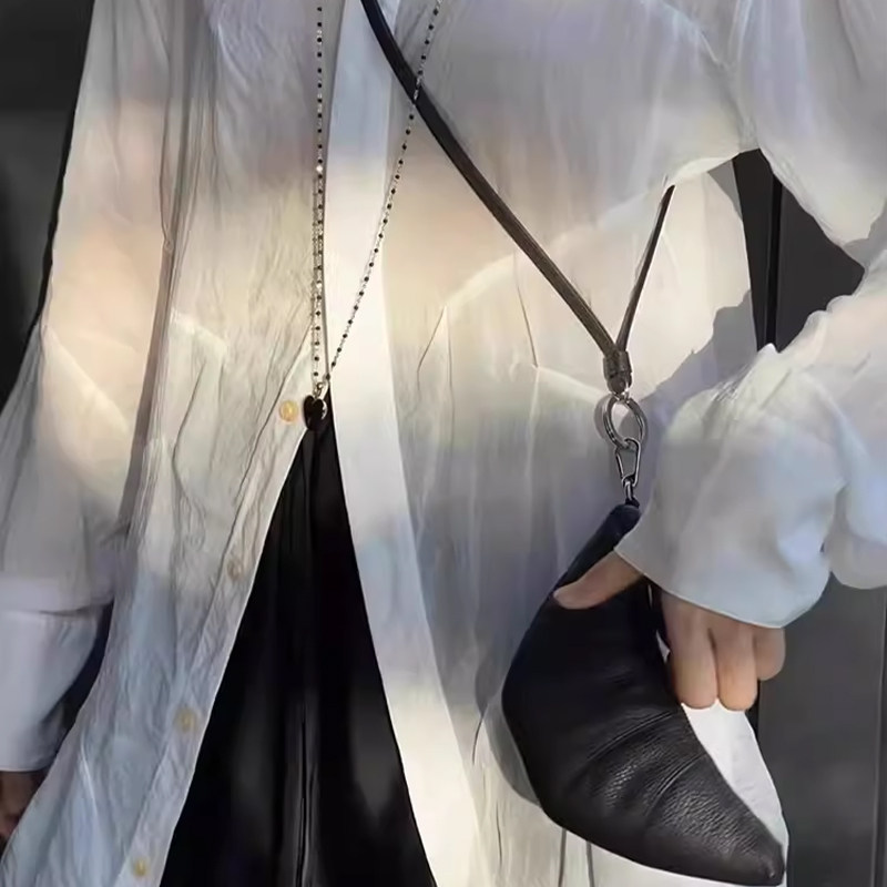 挂脖牛角包女软皮手拿包零钱饺子包2026新款口红化妆包迷你可颂包