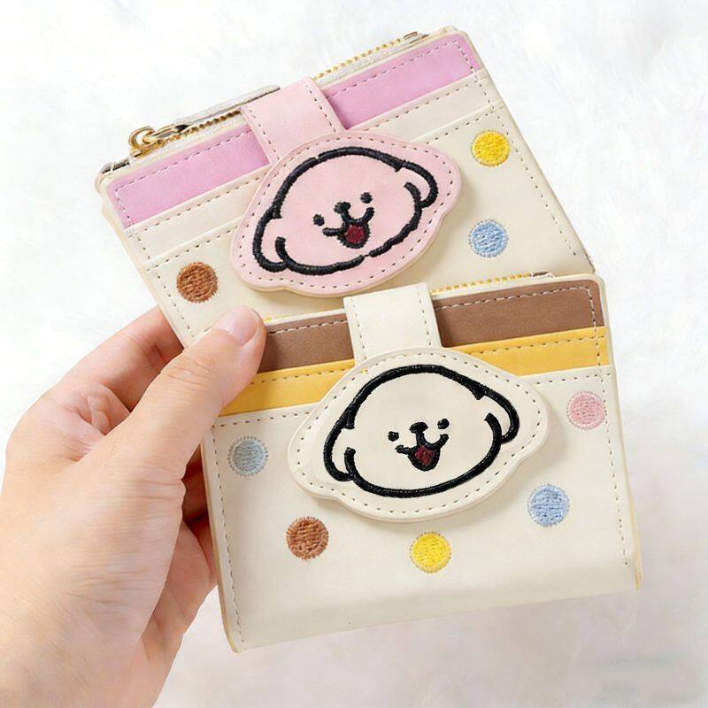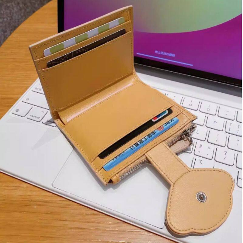 奶油感两折钱包女PU奶茶杏草莓粉多卡位大容量零钱包手拿包