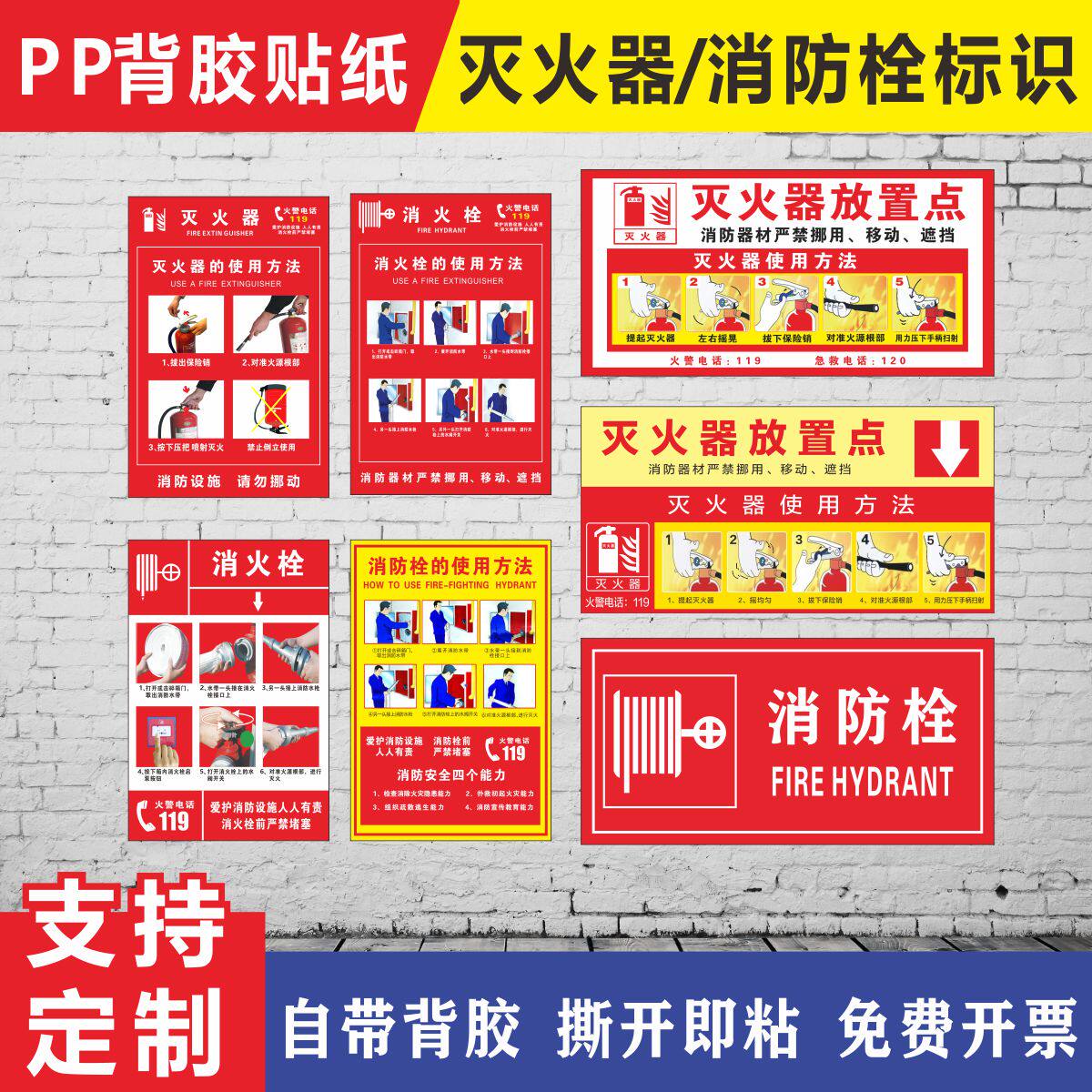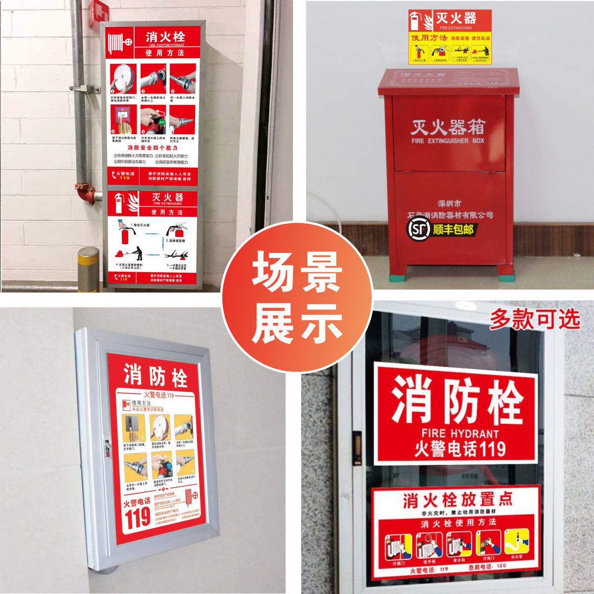 消防器材贴纸 灭火器消防栓放置贴纸使用说明消防安全警示牌标识