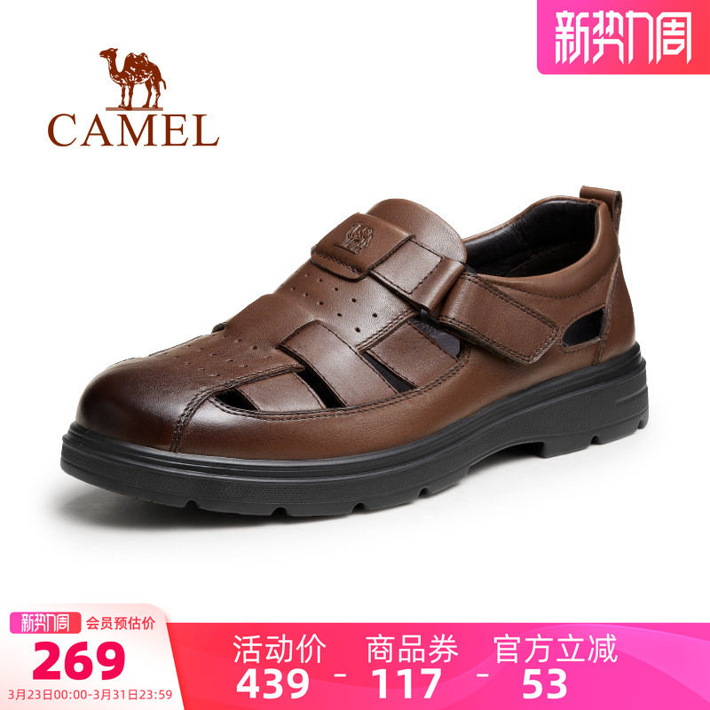 骆驼男鞋2026夏季新款透气防滑凉皮鞋包头凉鞋男士真皮商务爸爸鞋