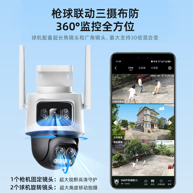 360官方旗舰店D2PRO三摄版900W户外监控WIFI摄像头无线室外防水球机监控器智能摄像机摄影头360度无死角