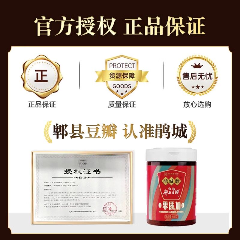 鹃城牌郫县红油豆瓣酱0添加600g正宗郫县豆瓣川菜调料罐装辣椒酱