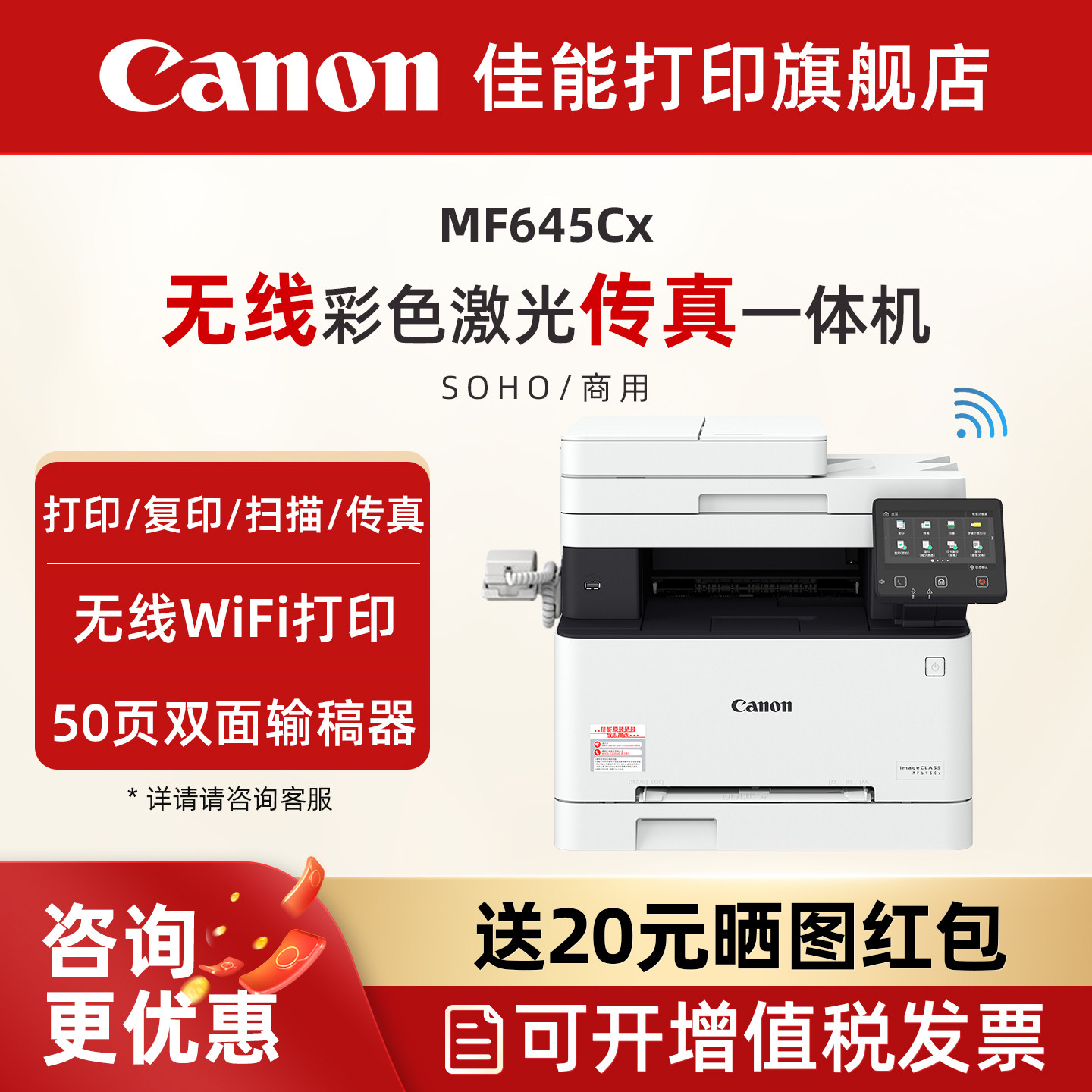 佳能旗舰店MF641Cw/MF643Cdw/MF645Cx彩色A4激光打印机复印扫描一体机办公商用自动双面可选手机无线WiFI