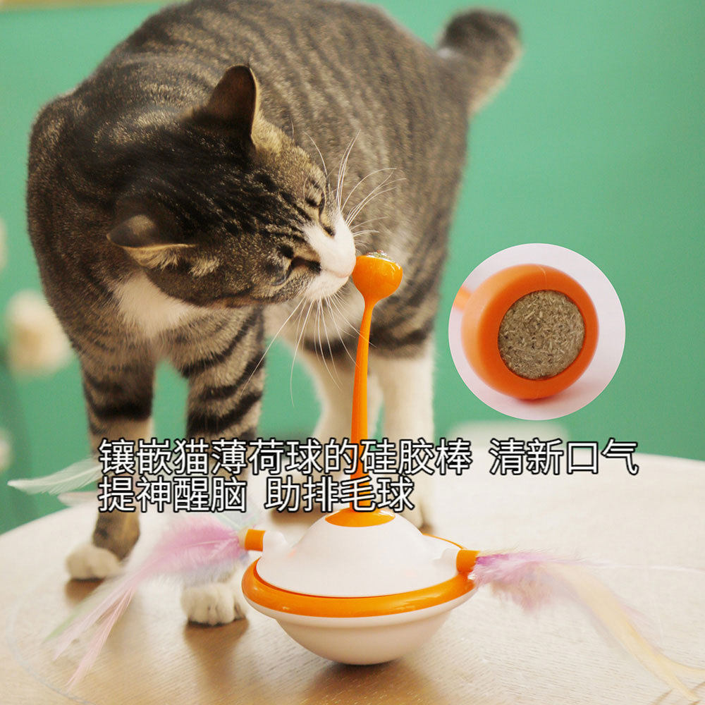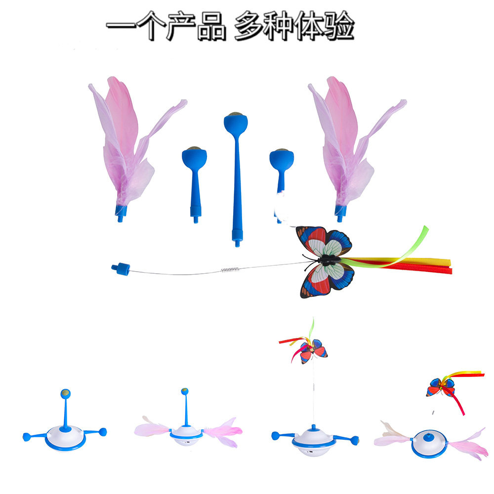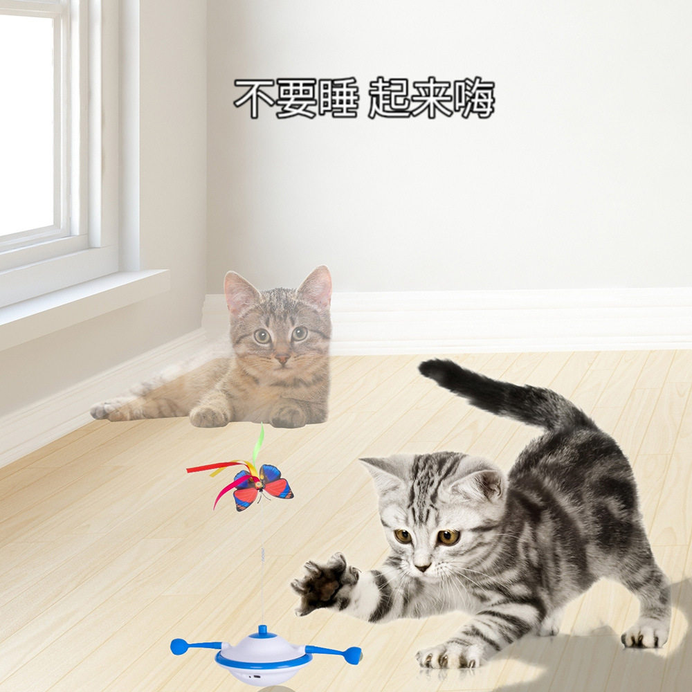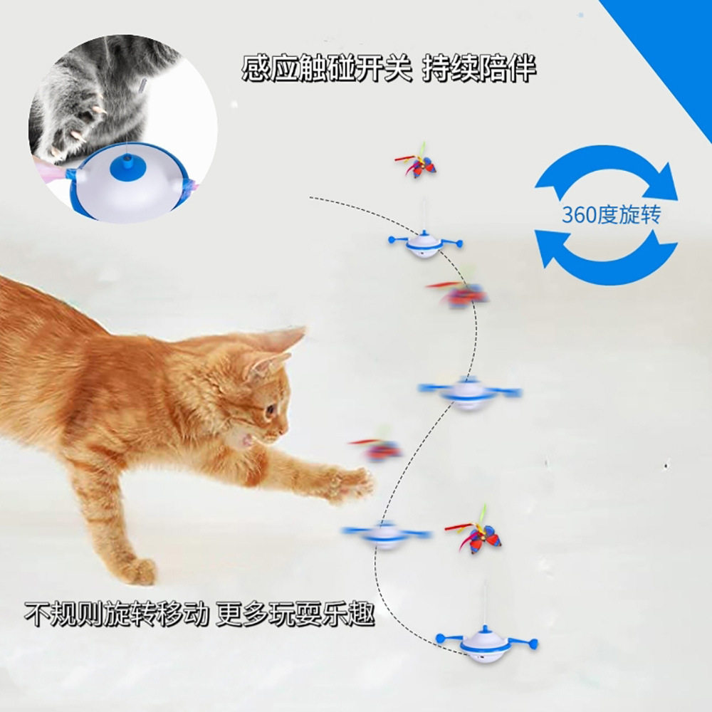 猫咪飞碟玩具电动逗猫玩具不规则旋转运动薄荷球棒羽毛头USB充电