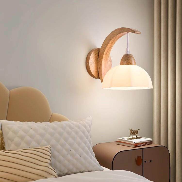 原木艺卧室床头壁灯中古风高级氛围感客厅背景墙壁吊线灯具民宿灯
