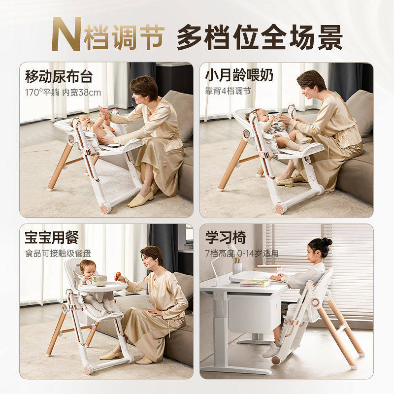 gen儿童成长椅宝宝餐椅吃饭座椅可升降调节实木餐桌椅高脚椅子原