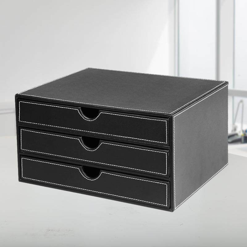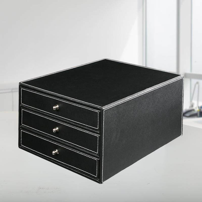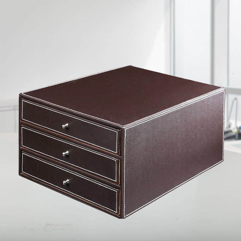 多层文件柜商务办公文件三层皮革收纳柜A4纸张抽屉柜高档办公室创意档案箱柜