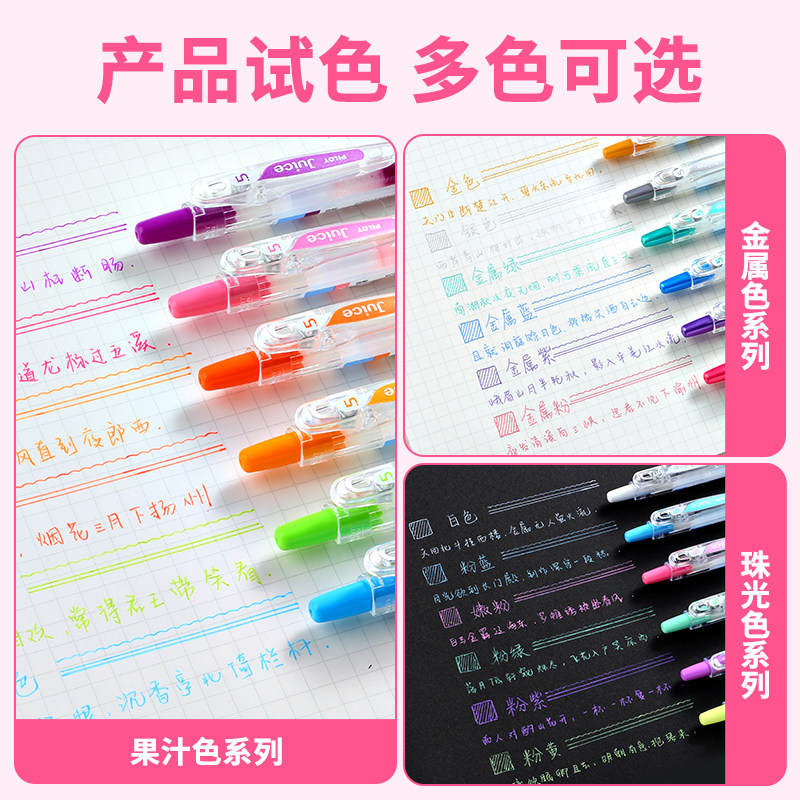 日本Pilot百乐Juice果汁笔24色手账笔金属色彩色笔做笔记用黑色红色学生水笔中性按动笔高颜值0.5荧光标笔