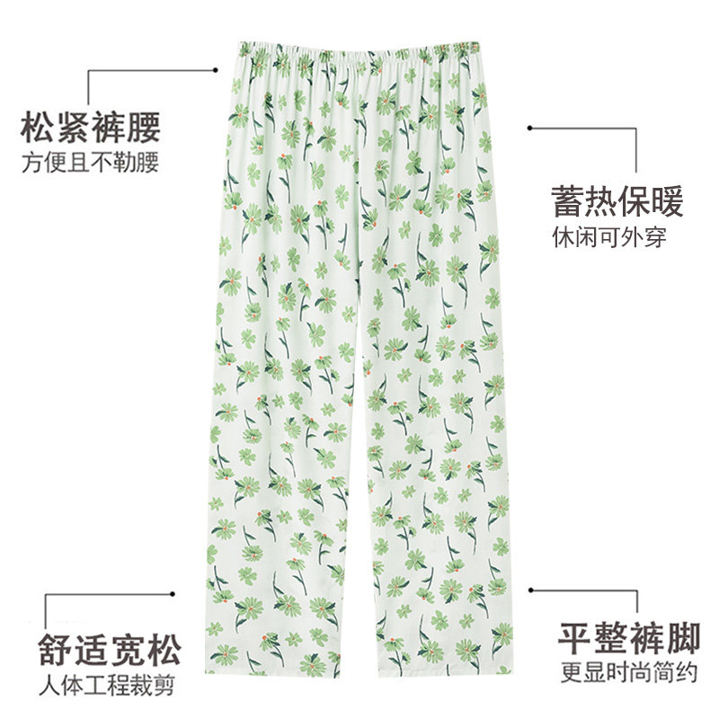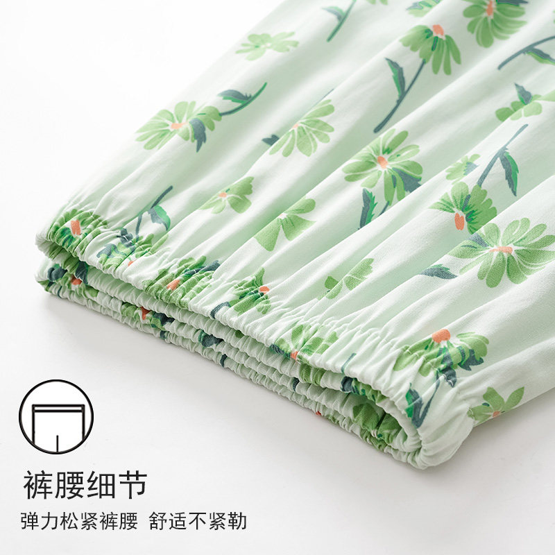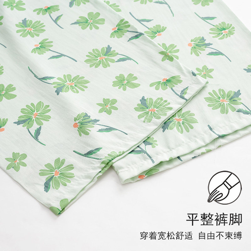 2026新款女士绿色人造棉布料睡裤家居裤女可外穿沙滩棉绸防蚊裤夏