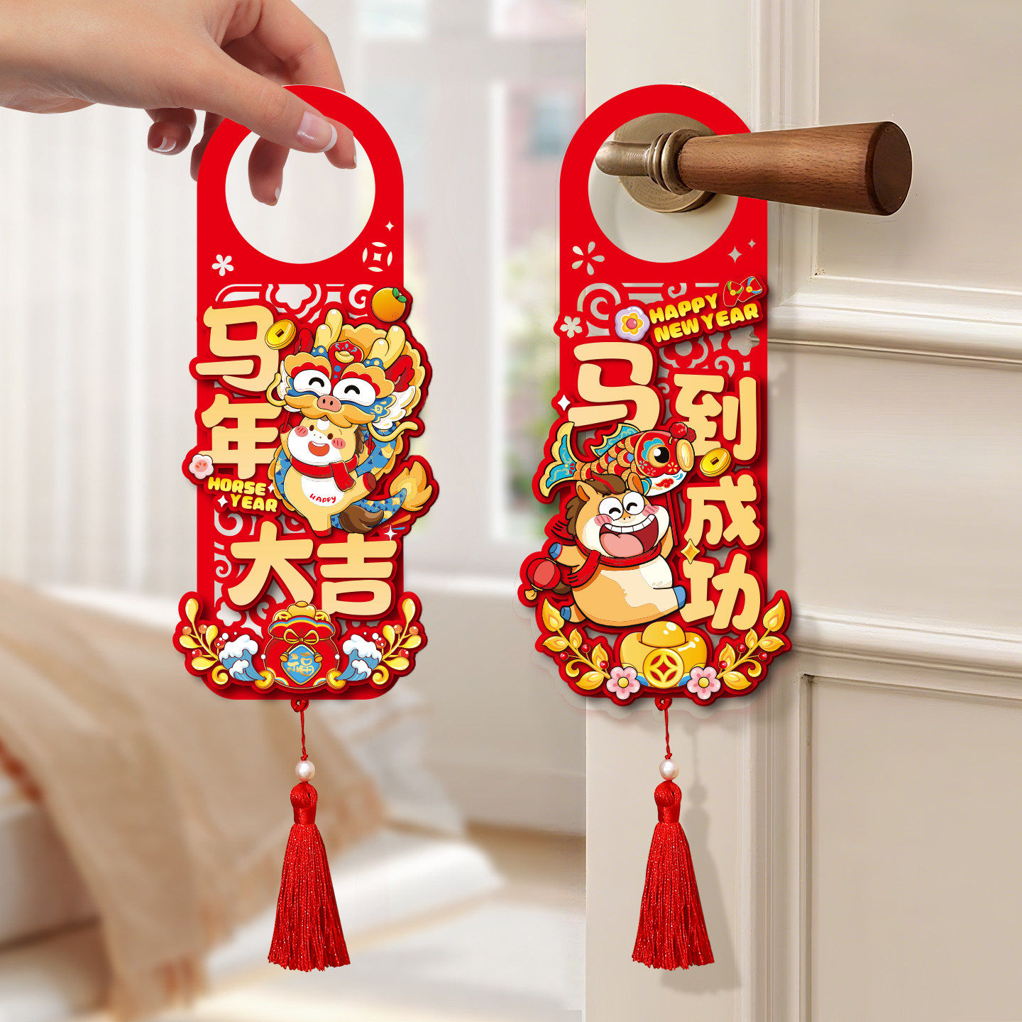 2026新款马年新年挂件过年房间入户门装饰春节布置门把手挂饰